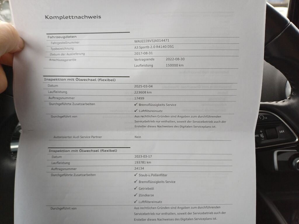 - TypA3 2.0 TFSi Sportback Sport 190PS S-Tronic