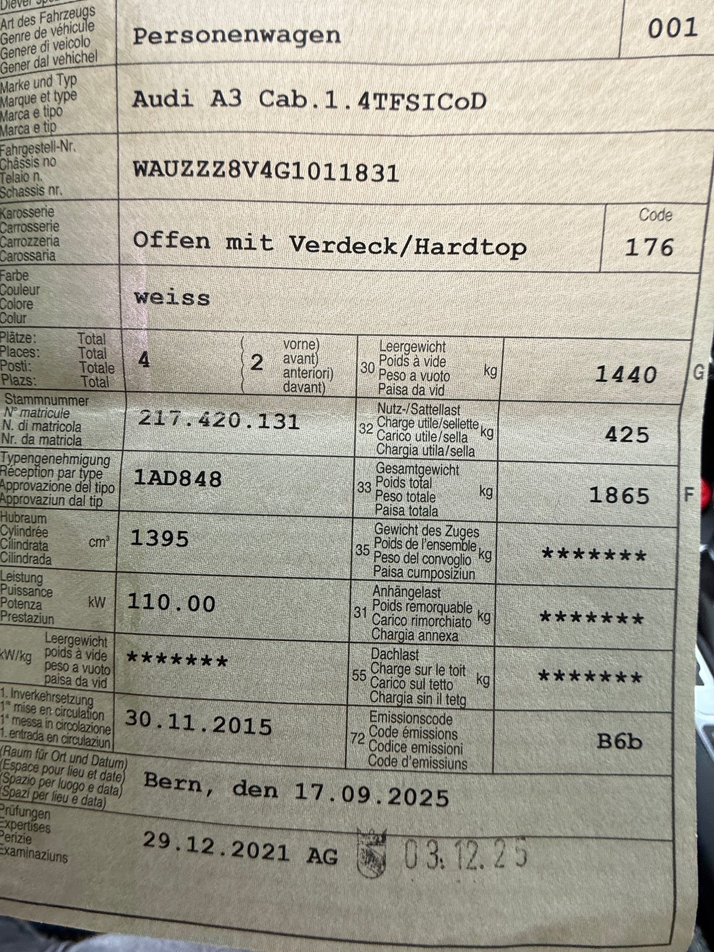 2015 AUDI A3 Cab.1.4TFSICoD