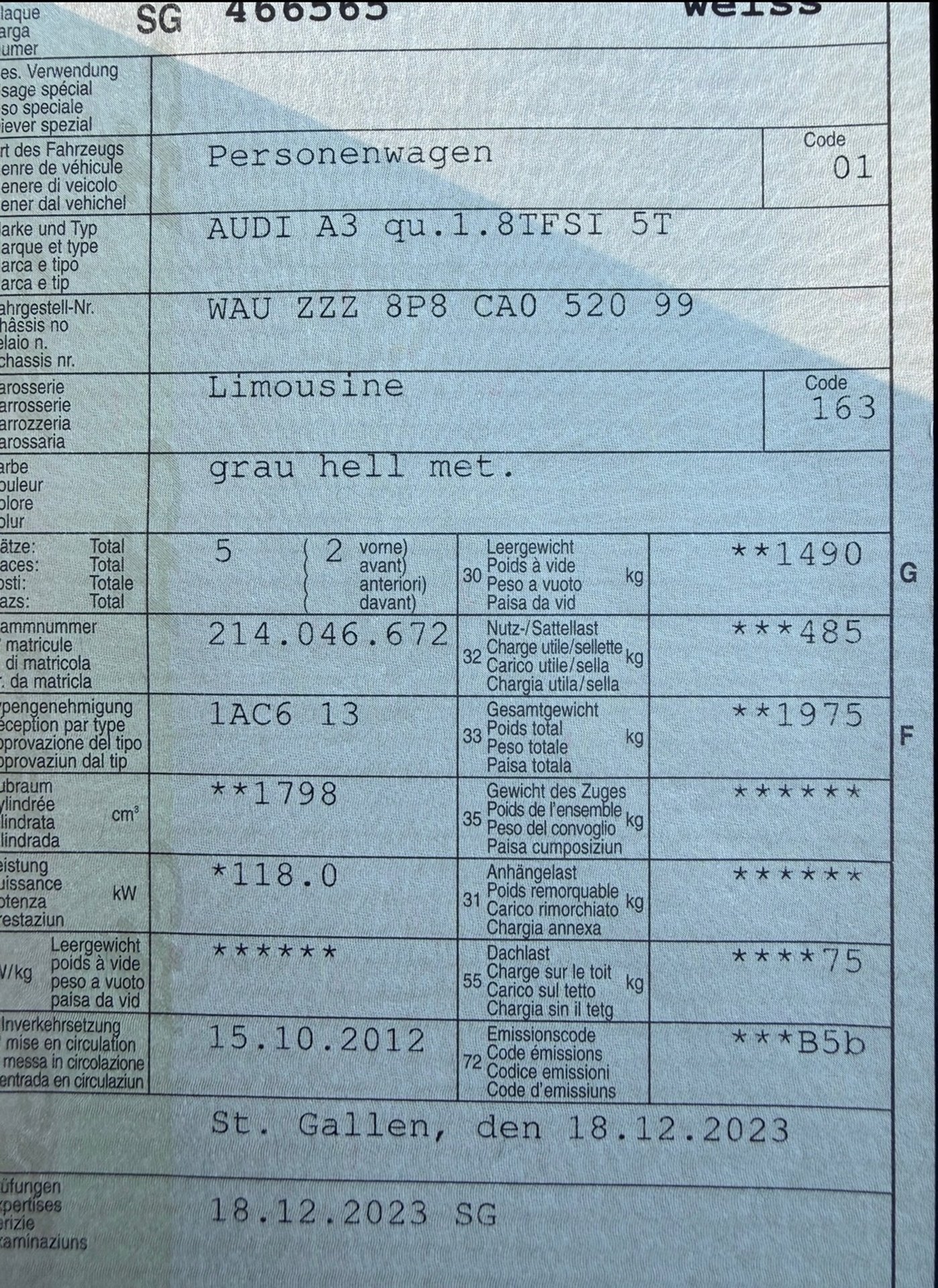 2012 AUDI A3 qu.1.8TFSI 5T
