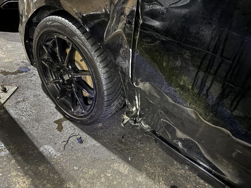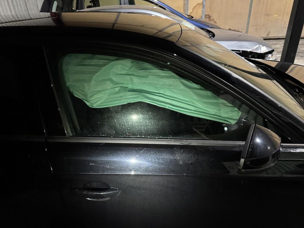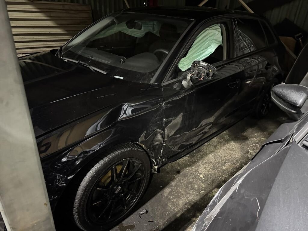 Dabei wurden die Stossstange, die Motorhaube, der Kotflügel, die Vorderradfelge, Teile der Radaufdhängung, der Kotflügel, die Türe etc. deformiert. Diverse Airbags sind ausgelöst