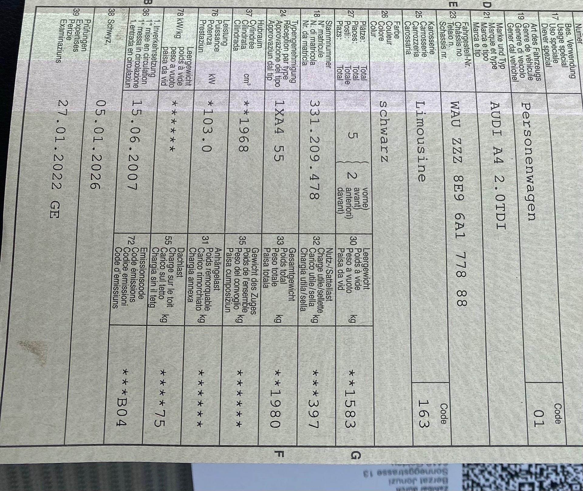 2007 AUDI A4 2.0TDI