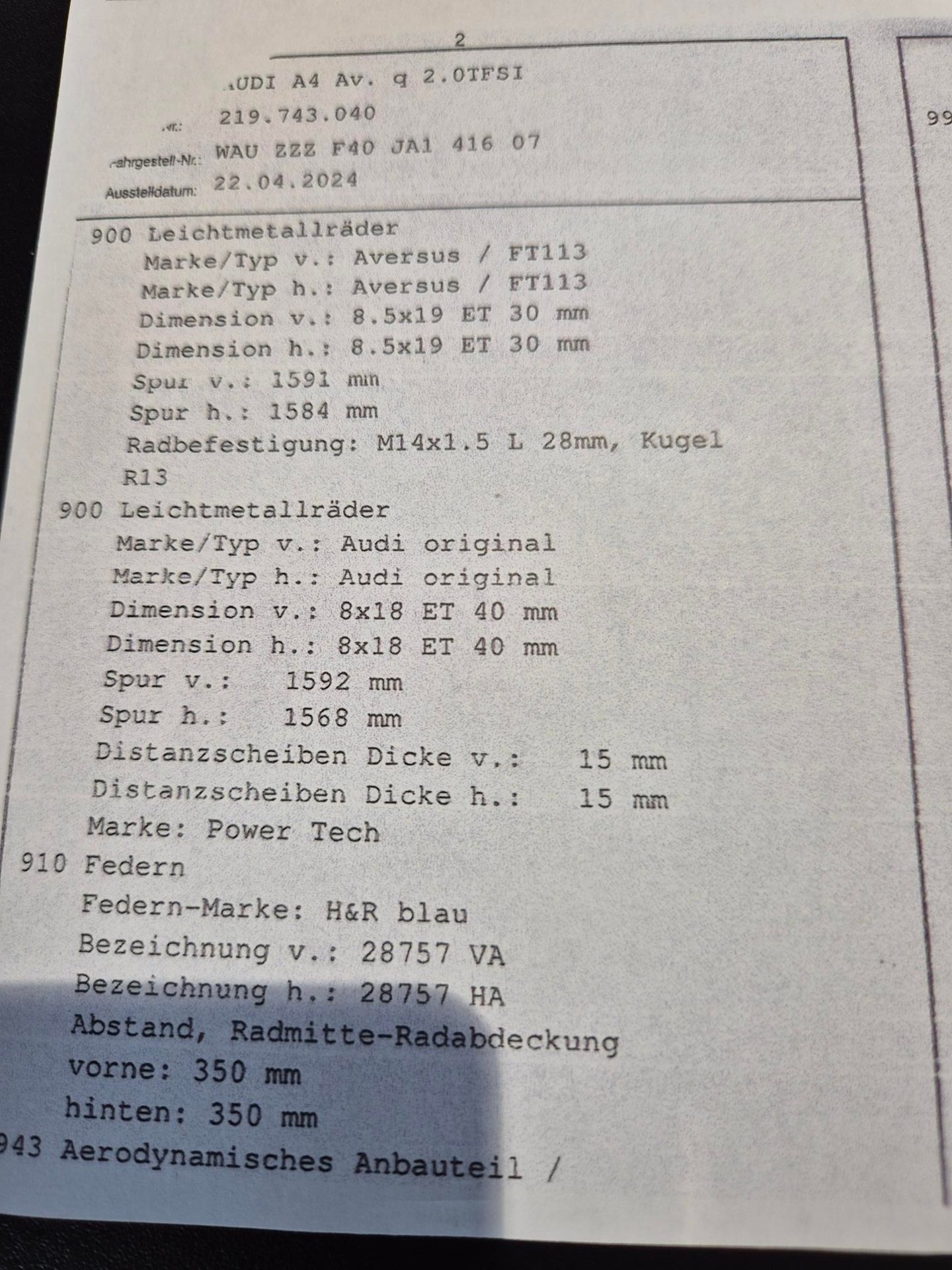 2018 AUDI A4 Av. q 2.0TFSI Sportec