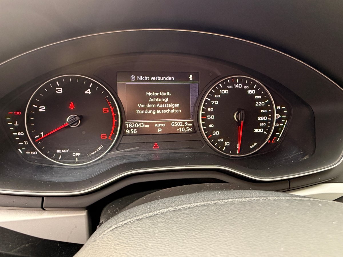 - Serial equipmentDrehzahlmesser, Wagenheber, 3 Kopfstützen hinten, Scheibenwischer vorne mit Intervall, Wärmeschutzverglasung, Airbag: Airbag Fahrer und Beifahrer, Kindersicherung an den hinteren Türen, Licht: Nebelschlussleuchte, Getönte Scheiben, Gepäckraumklappe mit automatischer Öffnung, Servolenkung geschwindigkeitsabhängig, Rücksitzlehne geteilt abklappbar, Audi drive select, Heckscheibenheizung, Aschenbecher und Zigarettenanzünder, Seitenfenster-Zierleisten schwarz, Licht: Drittes Bremslicht, Leseleuchten vorne, Bordcomputer, Klima: Pollenfilter (Staubfilter), Radwechselwerkzeug, Aussentemperaturanzeige, Gepäcktrennnetz, Media: MMI Radio plus, Servotronic, Partikelfilter und Oxydationskatalysator, Seitenairbag für Fahrer und Beifahrer, Zentralverriegelung mit Fernbedienung, Innenlicht-Abschaltverzögerung, Aussenspiegel rechts und links beheizbar und elektrisch verstellbar, Sitze: Vordersitze höhenverstellbar, Licht: Licht- und Regensensor, Aktive Kopfstützen, Polster: Stoff-Ausstattung, Fahrwerk: Dynamisches Fahrwerk, Befestigungsösen im Laderaum, Media: Digitaler Radioempfang (DAB), Dekor: Dekoreinlagen Diamantlack silbergrau, 3-Punkt-Sicherheitsgurte auf allen Plätzen, Fahrer-Informationssystem, Radiovorbereitung, Scheibenantenne, Ent- störung und 8 LS, Räder: Reifenreparatur-Set (Tire Fit), Elektronische Differentialsperre (EDS), Xenon Plus-Scheinwerfer, Sicherheitslenksäule, Notrufsystem, MMI basic, Media: Bluetooth-Schnittstelle, Wegfahrsperre elektronisch, Antriebsschlupfregelung (ASR), Tageskilometerzähler, Lenkrad: Leder-Multifunktionslenkrad im 3-Speichen-Design, Mittelarmlehne vorn in Kunstleder schwarz mit Kontrastnaht in Rot, Räder: Reifendruck-Kontrollanzeige, Elektronische Parkbremse, Geschwindigkeitsbegrenzer, Teppichfussmatten vorne und hinten, Wassertemperaturanzeige, Airbag: Window-Kopfairbags, Lichtwarnsummer, Kindersitzvorrichtung ISOFIX mit Deaktivierungsschalter für Beifahrer- Airbag, Elektrische Fensterheber vorne + hinten, Seitenaufprall-Schutzsystem, Leuchtweitenregulierung elektrisch, Lackierung: Uni-Lackierung, Digital Uhr, Warndreieck, Türgriffe aussen in Wagenfarbe, Cupholder vorne, Radschrauben mit Diebstahlsicherung, Garantie: 2 Jahre ohne Kilometerbegrenzung (ab 1. Inv.), Höhenverstellbare Gurten vorne, Sonnenblende zweifach, Brillenablage, Antiblockiersystem (ABS), Licht: Tagfahrlicht, Sequentielles 7-Gang-Getriebe mit Automatikfunktion, Kofferraumfernentriegelung, Gurtstraffer vorne, Assist: Bremsassistent (BAS), Klima: Klimatisierungsautomatik, Schlüsselloser Motorstart, Audi pre sense city, Stossstangen und Aussenspiegel in Wagenfarbe, Nebelscheinwerfer, Sitze: Vordersitze manuell verstellbar, Bremsbelag-Verschleissanzeige, Wartungsintervall-Anzeige, Leichtmetallräder im 10-Speichen-Design 17J, Elektronisches Stabilitäts-Programm (ESP), Autobahnblinkfunktion, Lenkrad: Lenkrad längs- und höhenverstellbar, Ablagen in den Türen