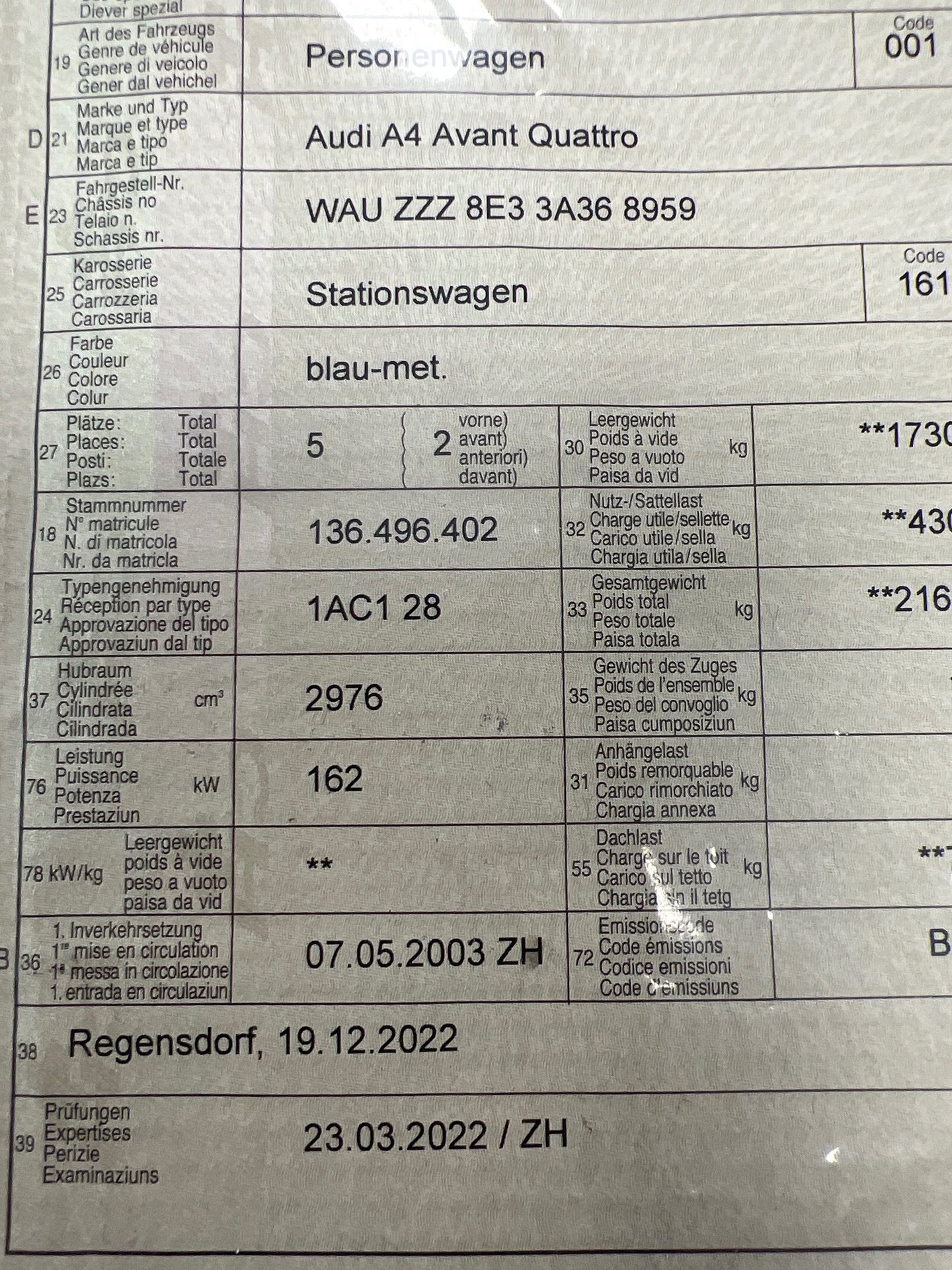 2003 AUDI A4 Avant Quattro