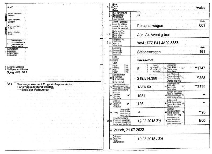 - InformationKeine technische Prüfung (Werkstatttest) vorgenommen