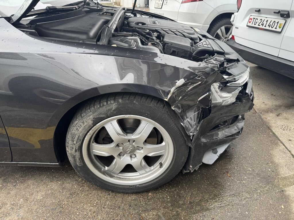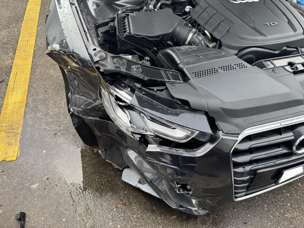 Dabei wurde vorne der Kotflügel, der Stossfänger, die Motorhaube, der Scheinwerfer sowie weitere Bauteile im Anprallbereich beschädigt. Risiko Längsträger.