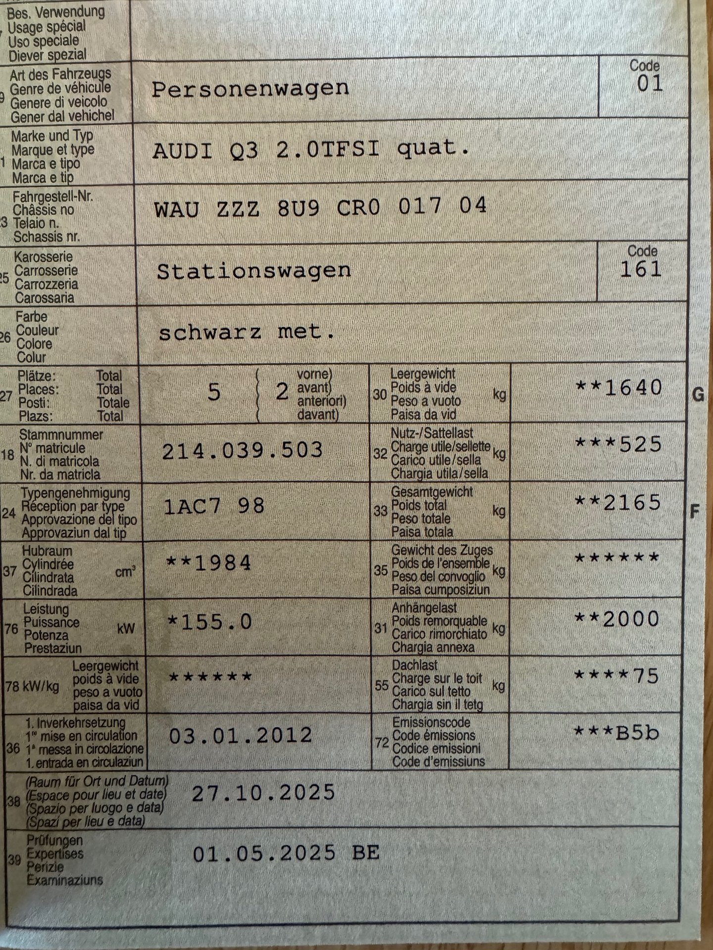 2012 AUDI Q3 2.0TFSI quat.