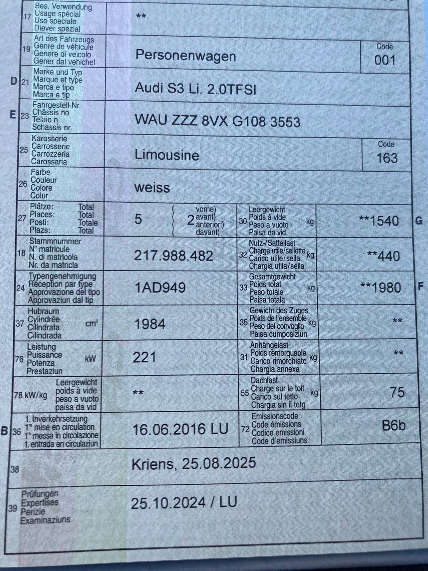 2016 AUDI S3 Li. 2.0TFSI