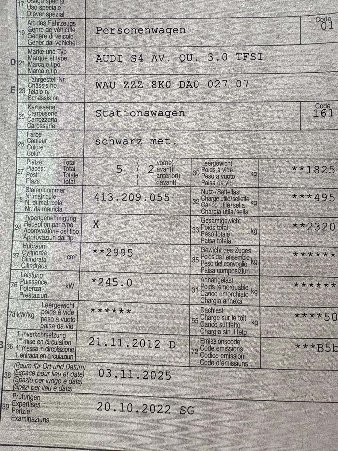 2012 AUDI S4 AV. QU. 3.0 TFSI