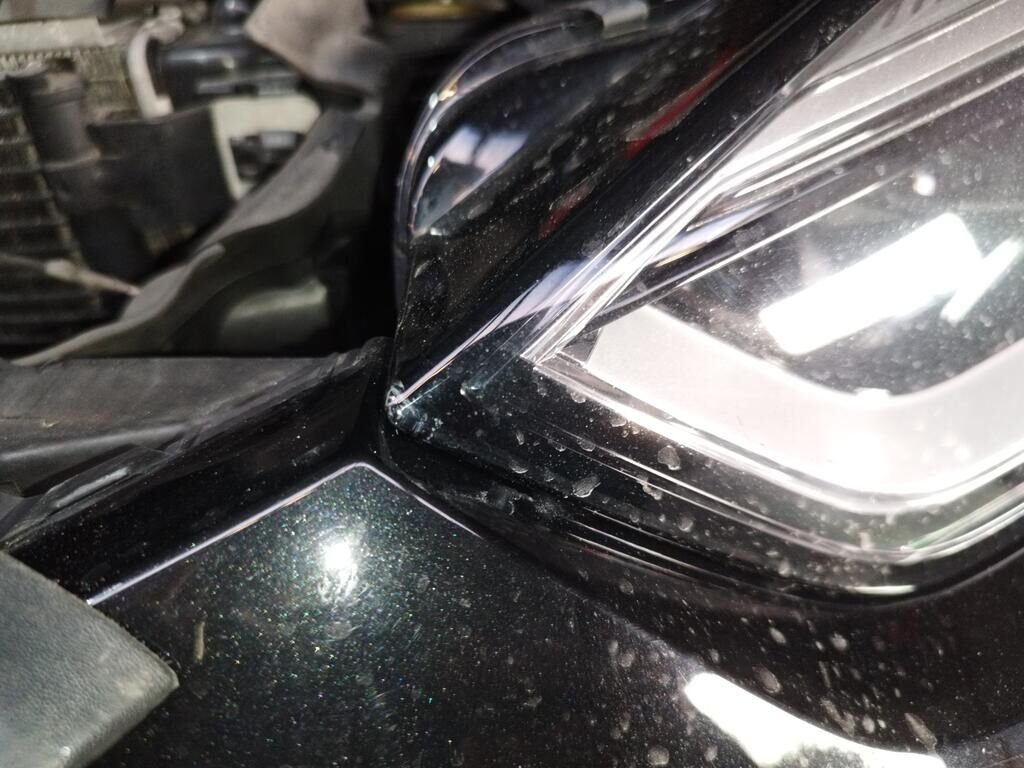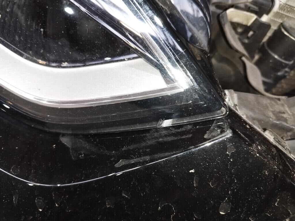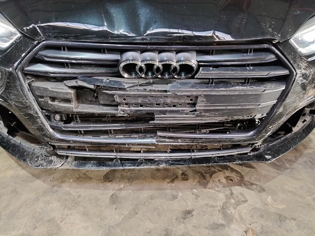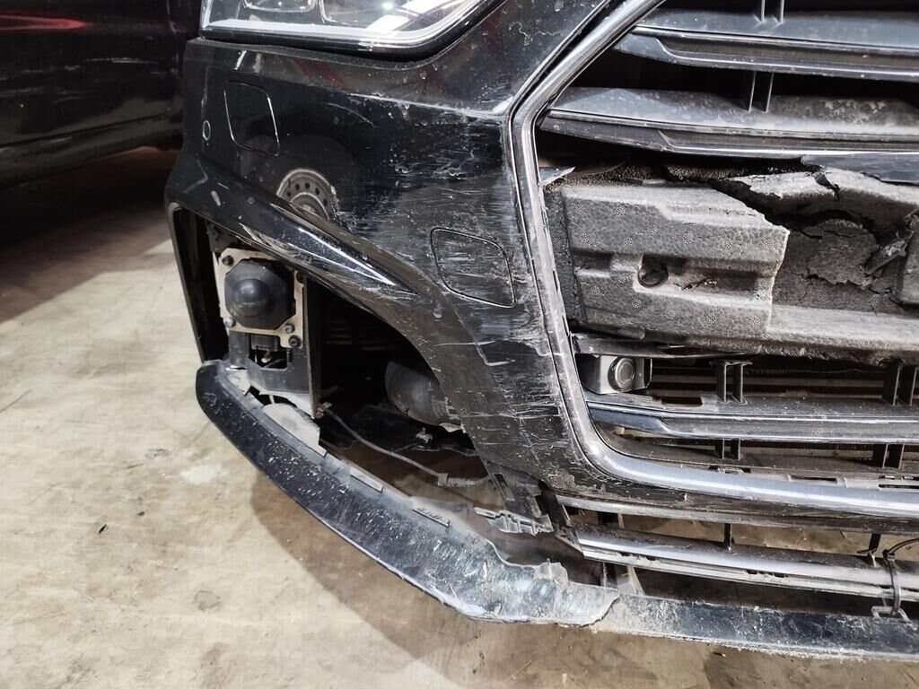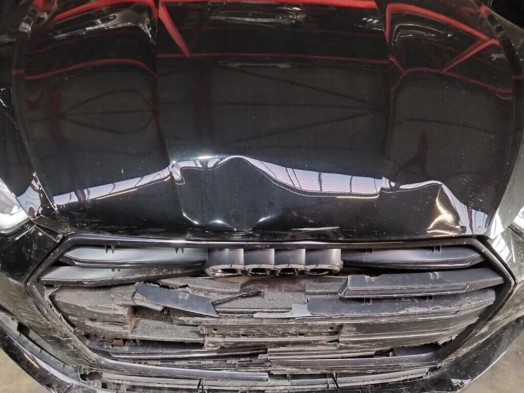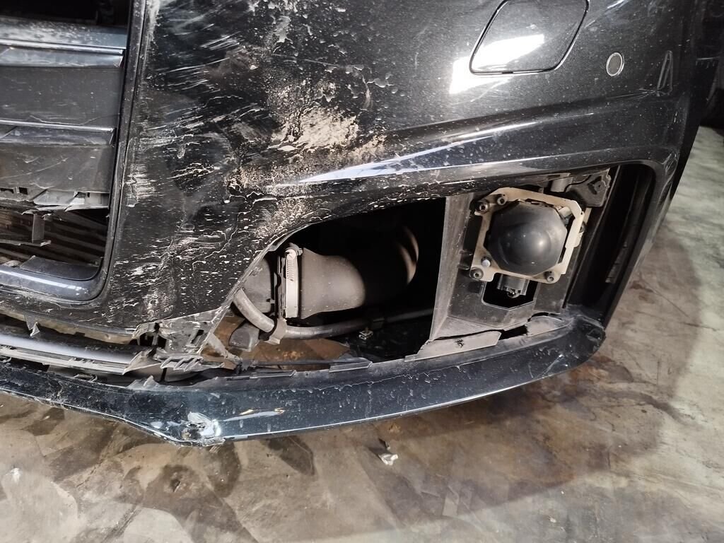 Die ganze Front ist deformiert bis und mit Kühler, die Motorhaube ist deformiert, beide Scheinwerfer sind gerissen, beide Radarsensoren haben Kratzspuren.