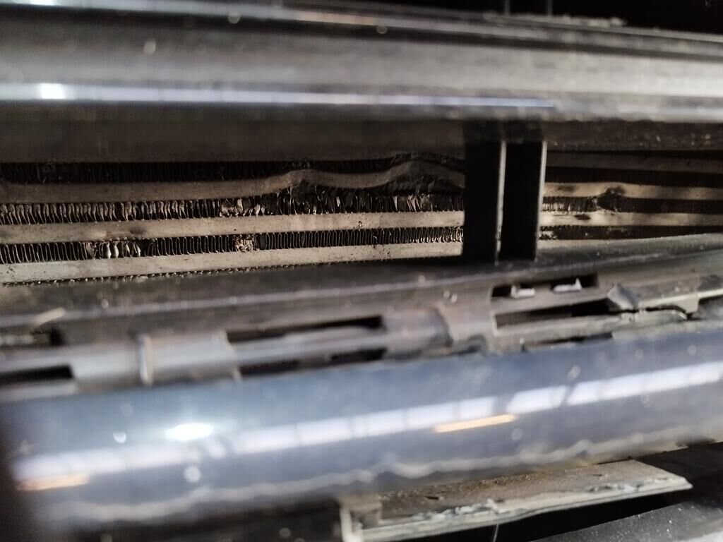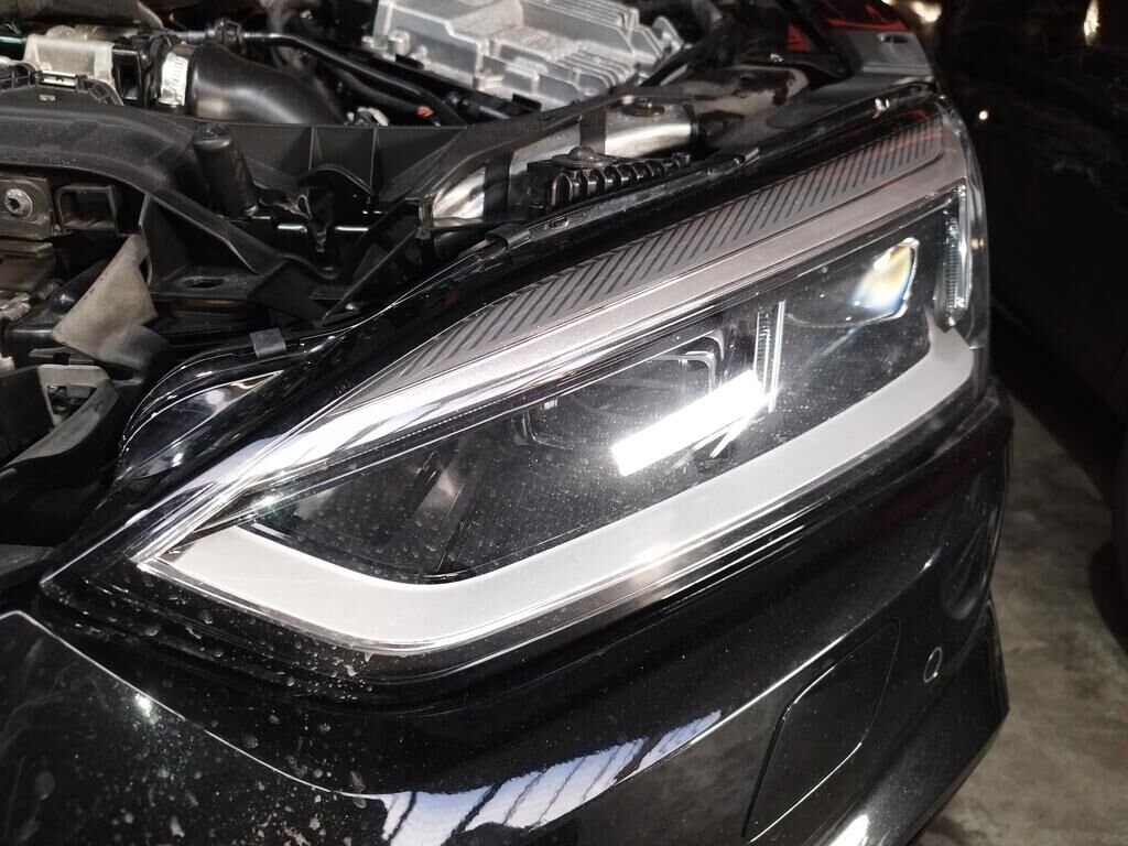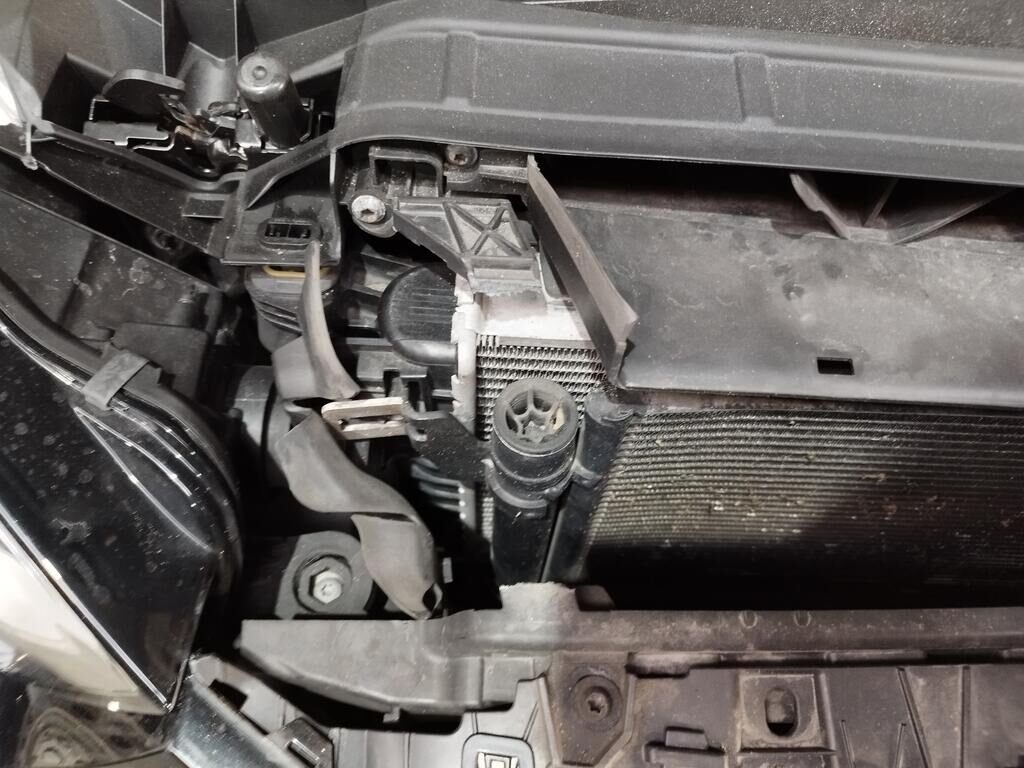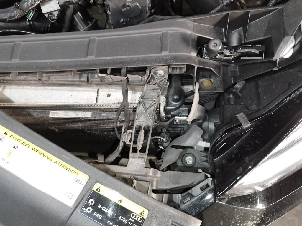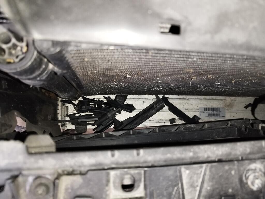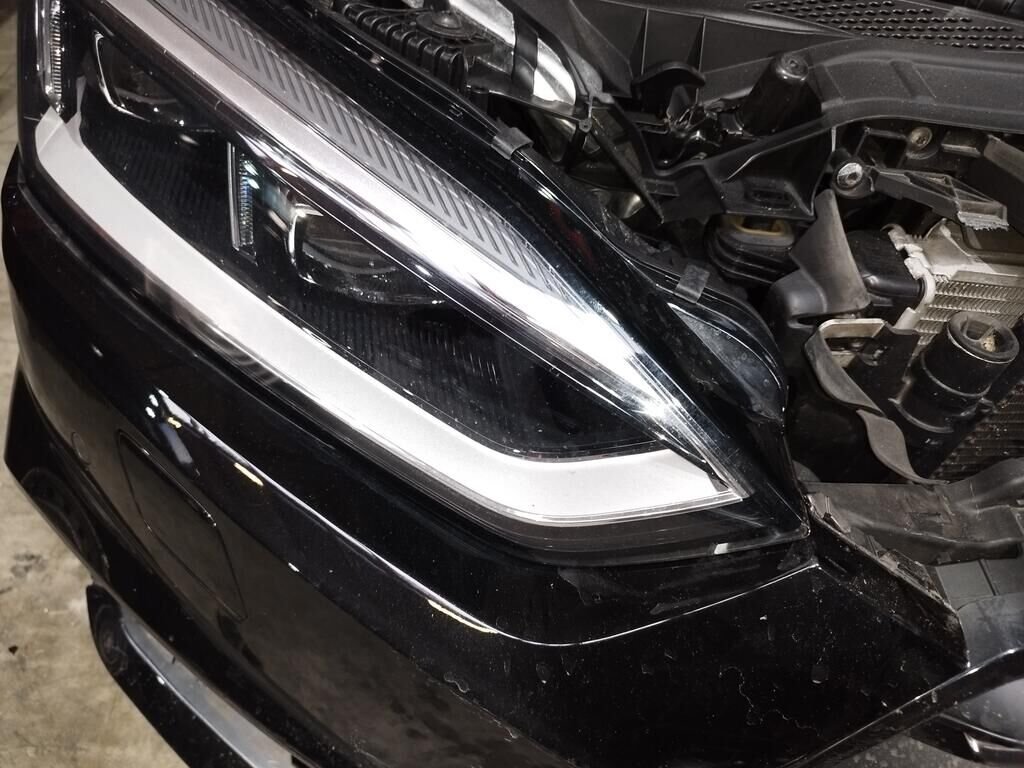Die ganze Front ist deformiert bis und mit Kühler, die Motorhaube ist deformiert, beide Scheinwerfer sind gerissen, beide Radarsensoren haben Kratzspuren.