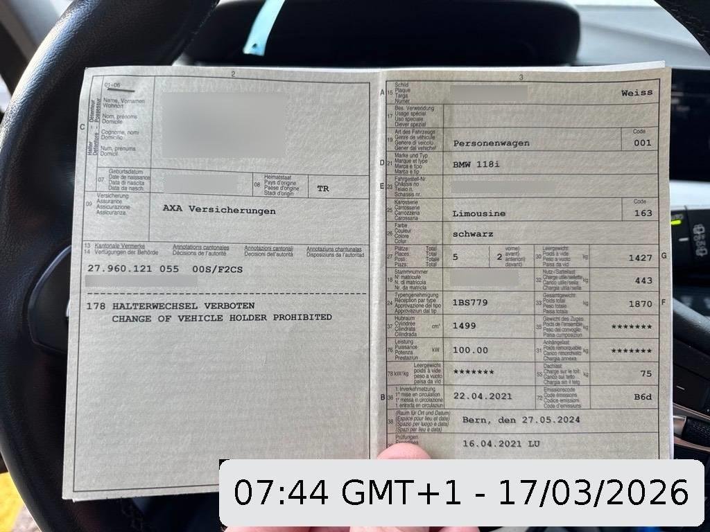 2021 BMW 118i Steptronic, 136 HP