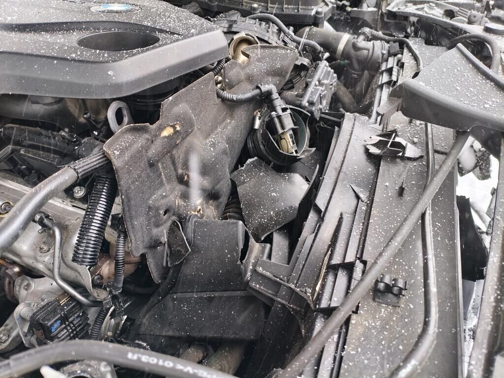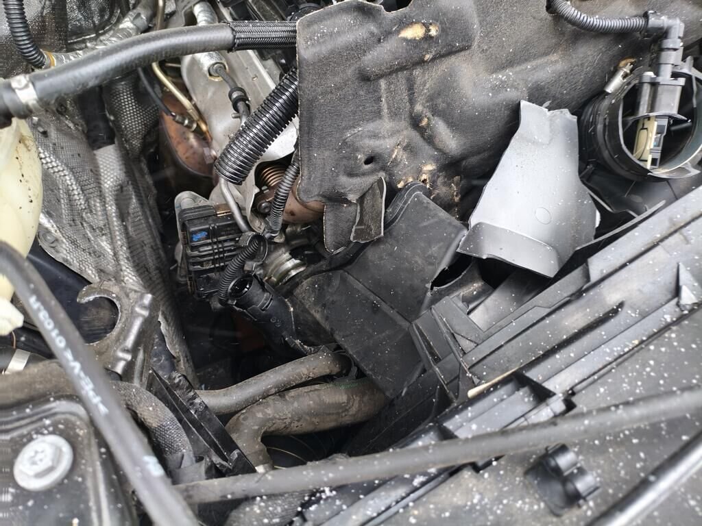 Eléments moteur, caches filtres supports et turbo endommagés.