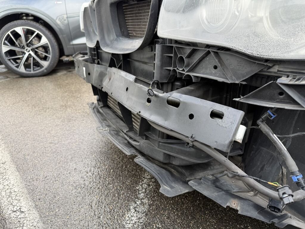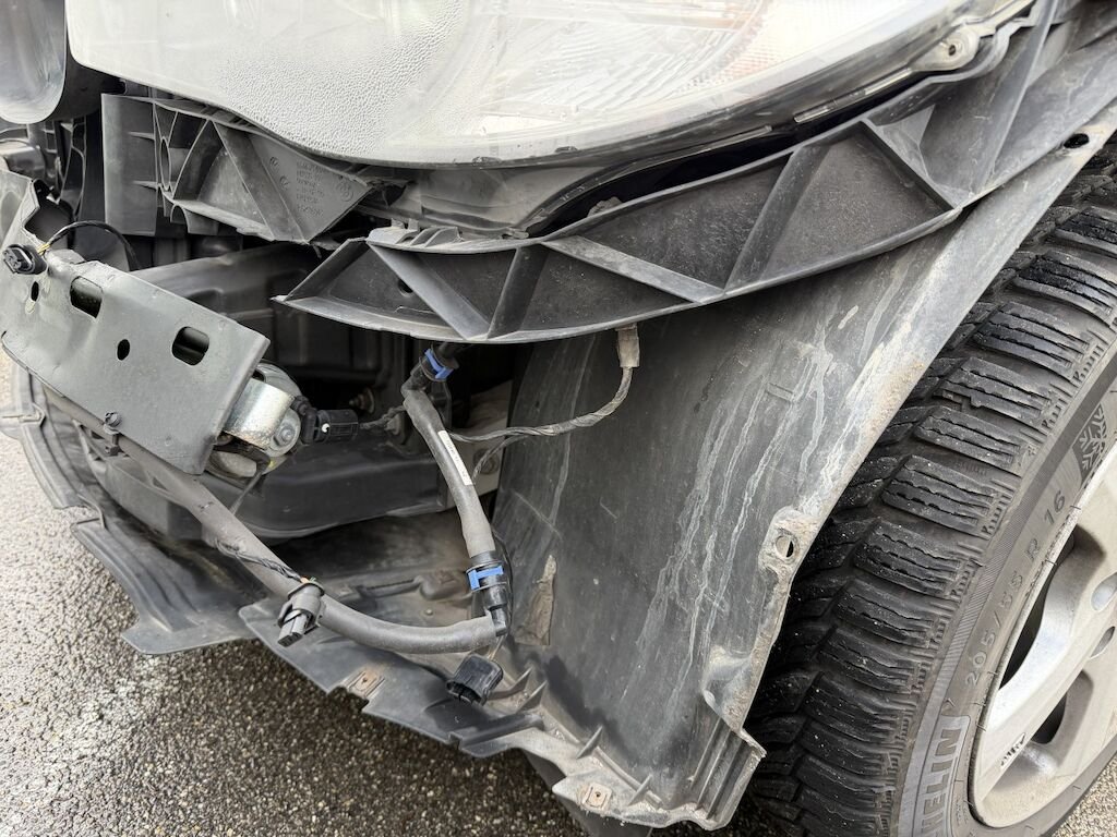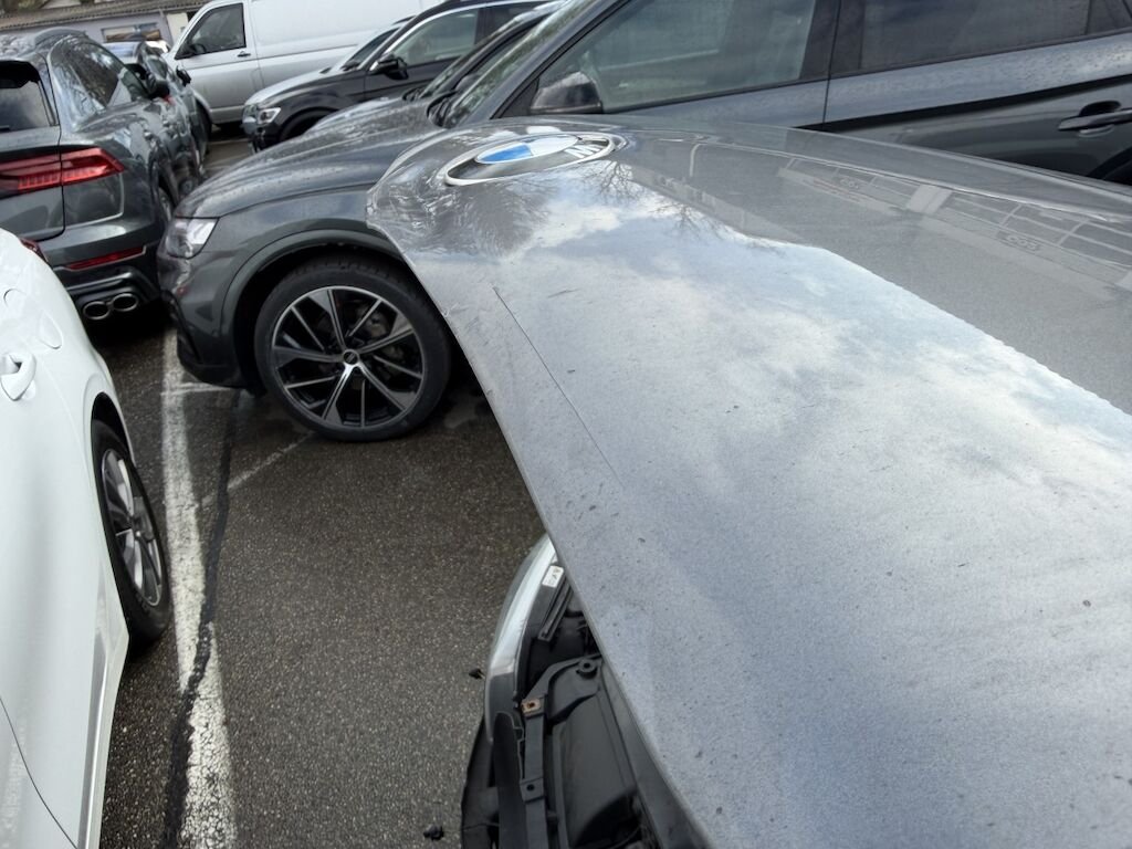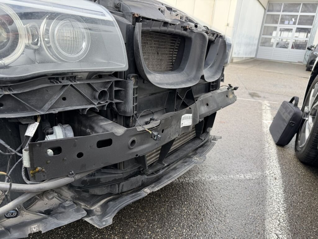 Frontschaden: Motorhaube verbeult mit Lackschaden, Scheinwerfer links defekt, Scheinwerferhalter rechts gebrochen, Schlossträger gebrochen, Luftführung oben gebrochen, STS deforfmiert, SRA-Düse links defekt, SRA-Abdeckung fehlt, Gitter oben l und unten gebrochen, Kotflügel links gerissen, Aufzählung nicht abschliessend, Motor läuft, Fz ist fahrbar. ACHTUNG HUNDEHALTERIN, Fz voller Hundehaare!
