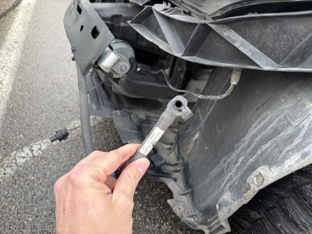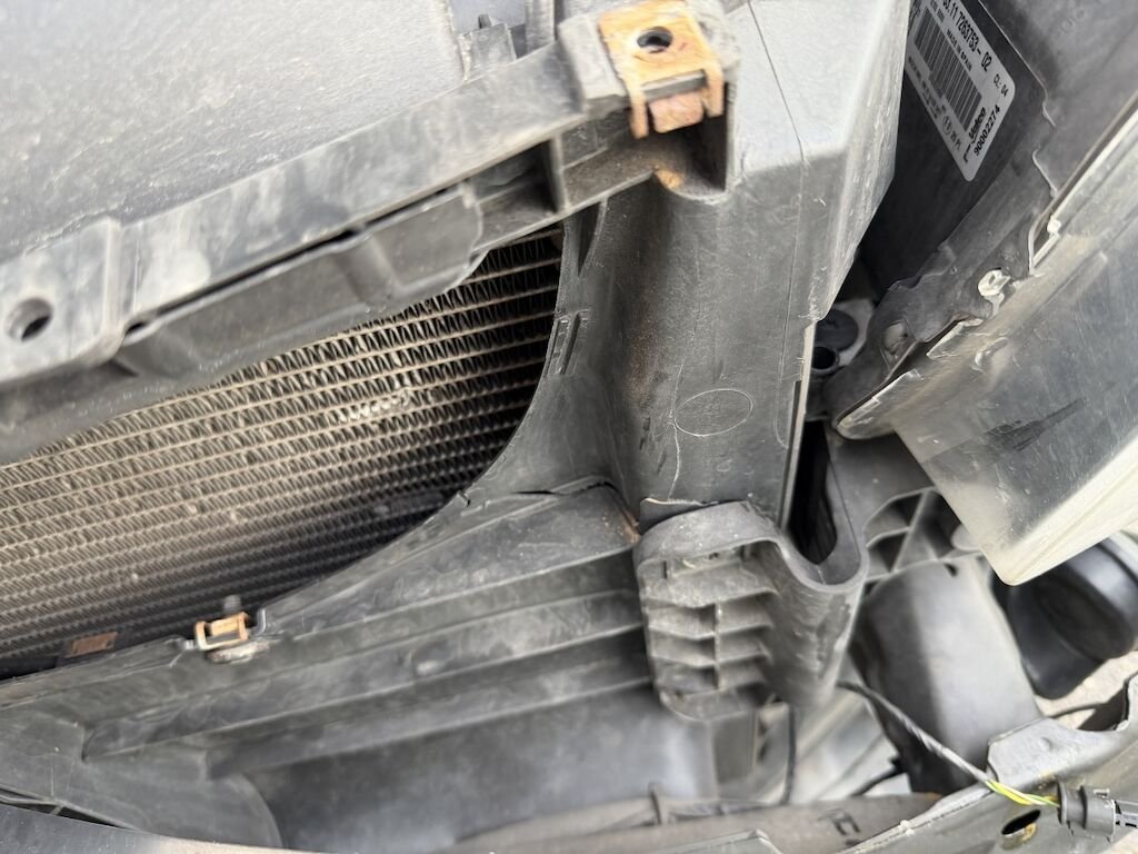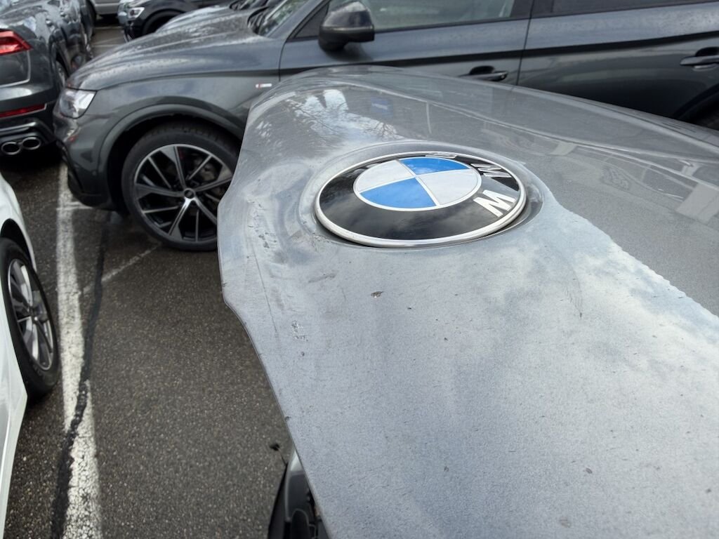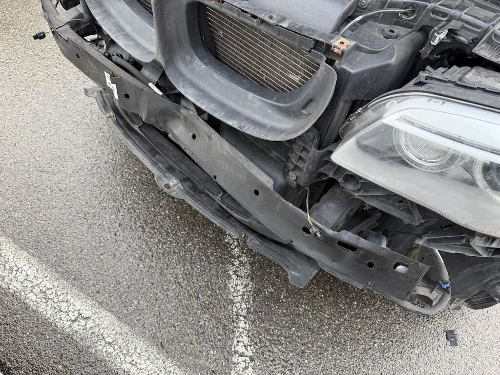 Frontschaden: Motorhaube verbeult mit Lackschaden, Scheinwerfer links defekt, Scheinwerferhalter rechts gebrochen, Schlossträger gebrochen, Luftführung oben gebrochen, STS deforfmiert, SRA-Düse links defekt, SRA-Abdeckung fehlt, Gitter oben l und unten gebrochen, Kotflügel links gerissen, Aufzählung nicht abschliessend, Motor läuft, Fz ist fahrbar. ACHTUNG HUNDEHALTERIN, Fz voller Hundehaare!