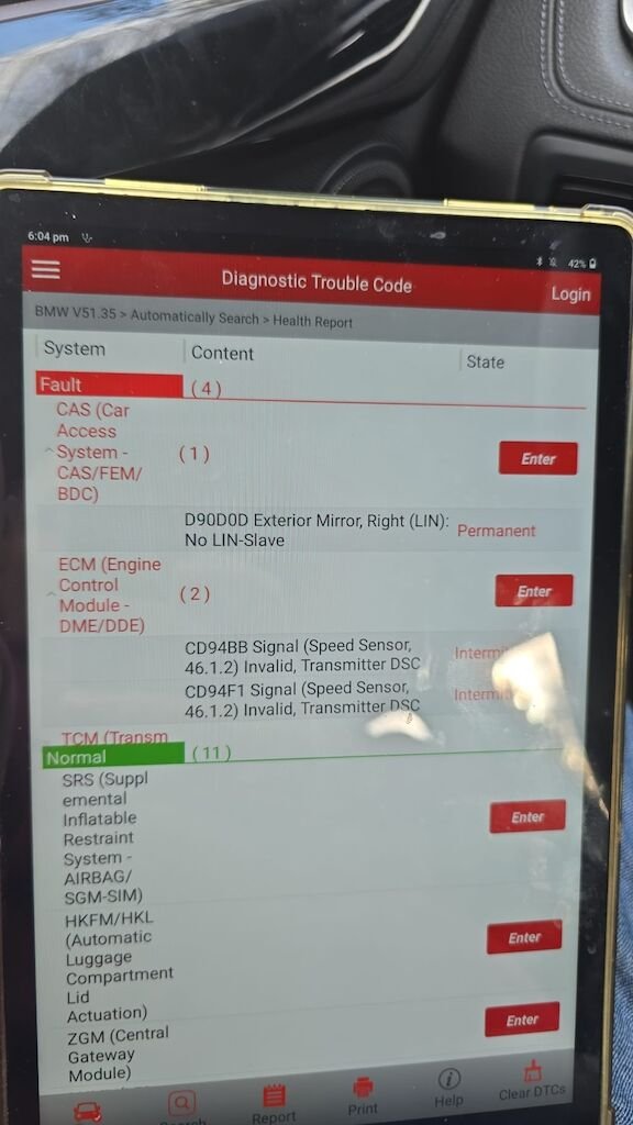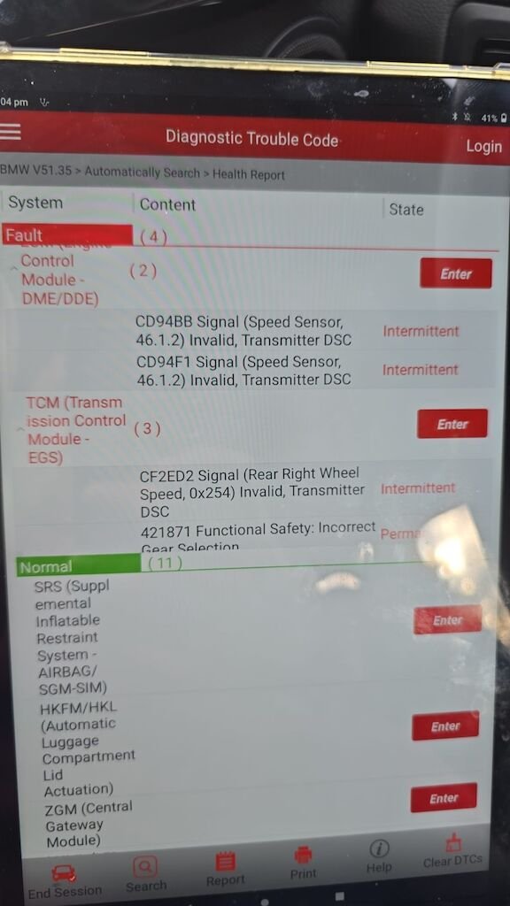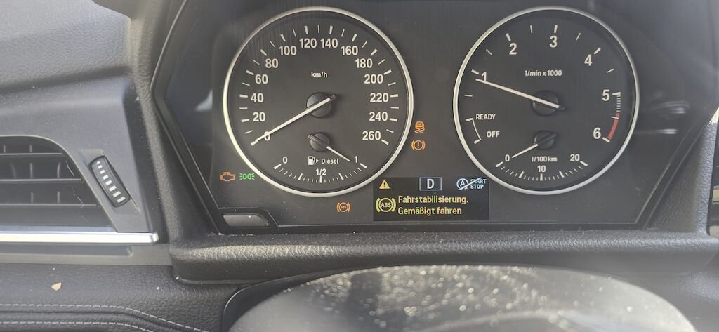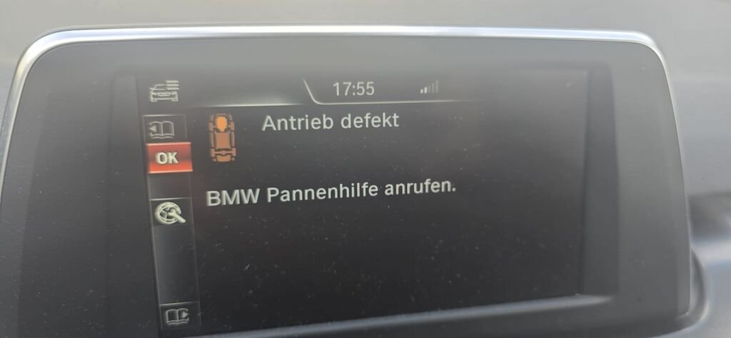 - InformationHeckschaden rechts (Delle/Verformung). Möglicher Hagelschaden auf Dach und Fronthaube. Meldung "Antrieb defekt" — vermutlich schwache Batterie. Diverse Fehlermeldungen: Raddrehzahlsensor hinten rechts (ABS/DSC/DME/TCM), Fahrstabilisierung-Warnung, Aussenspiegel rechts LIN-Fehler. Batterie sollte ersetzt werden. Diesel, 7-Sitzer Gran Tourer, M Sport, Vorderradantrieb, 8-Stufen-Automat. Anhängerkupplung, Tempomat, Parksensoren, Winterreifen Continental. Service (01/2025) und MFK (05/2024).