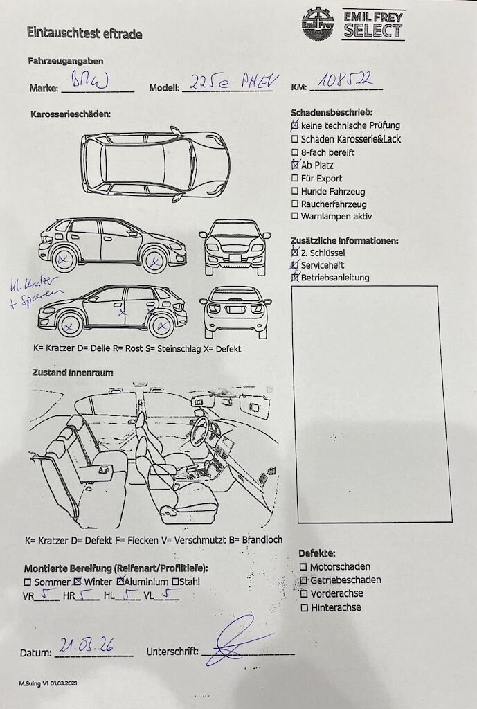 Keine technische Prüfung (Werkstatttest) vorgenommen