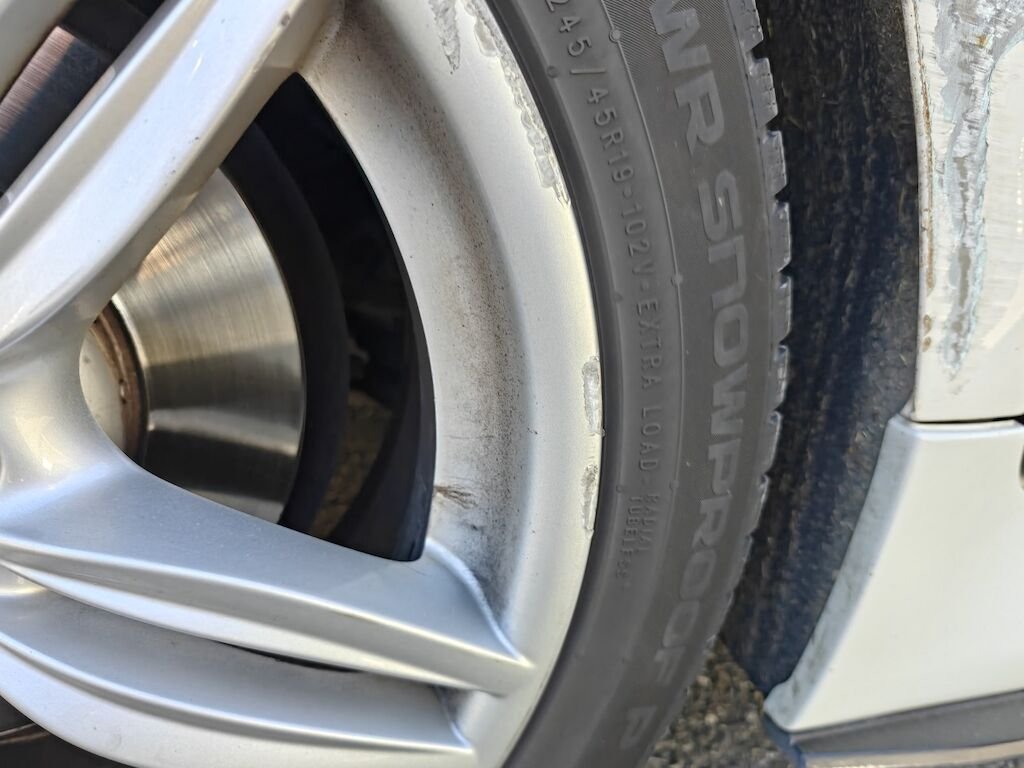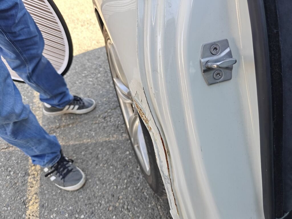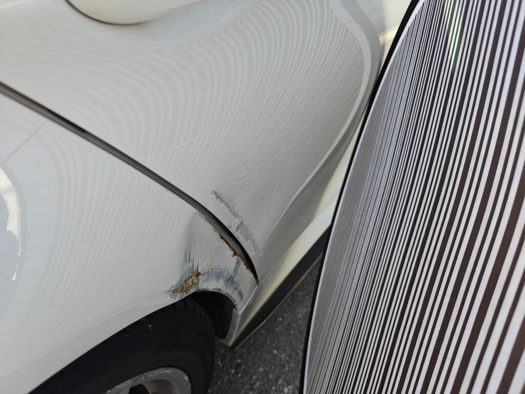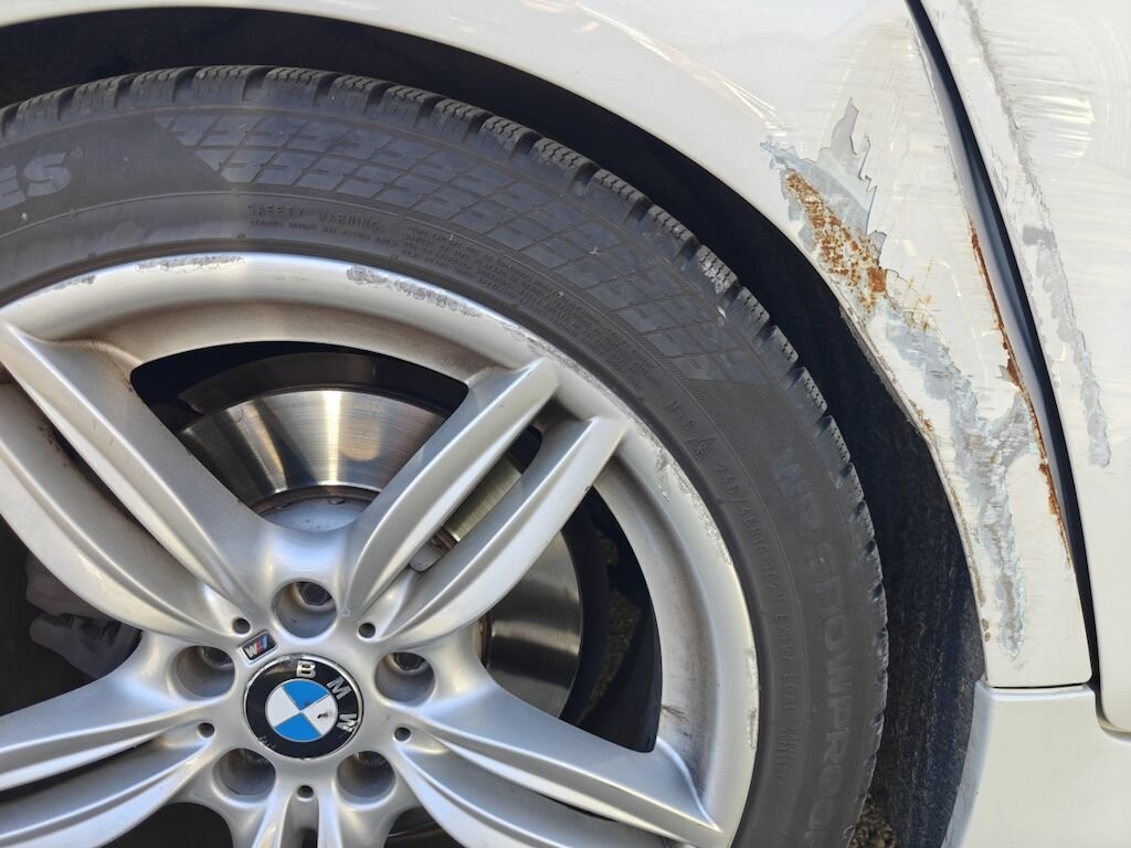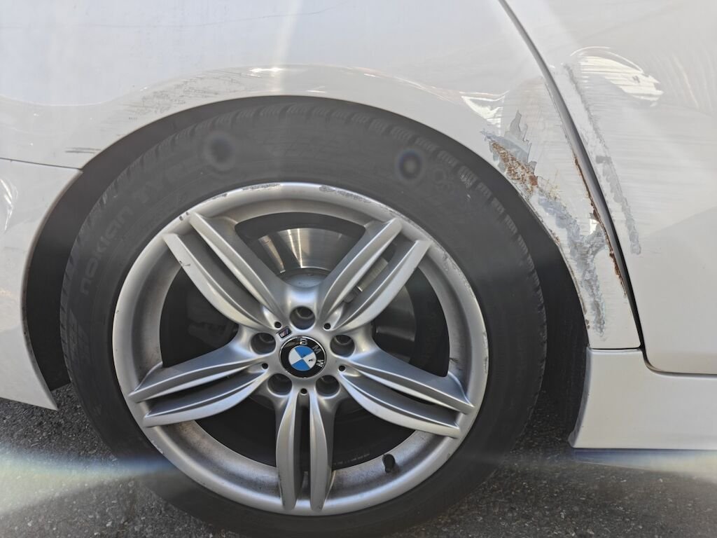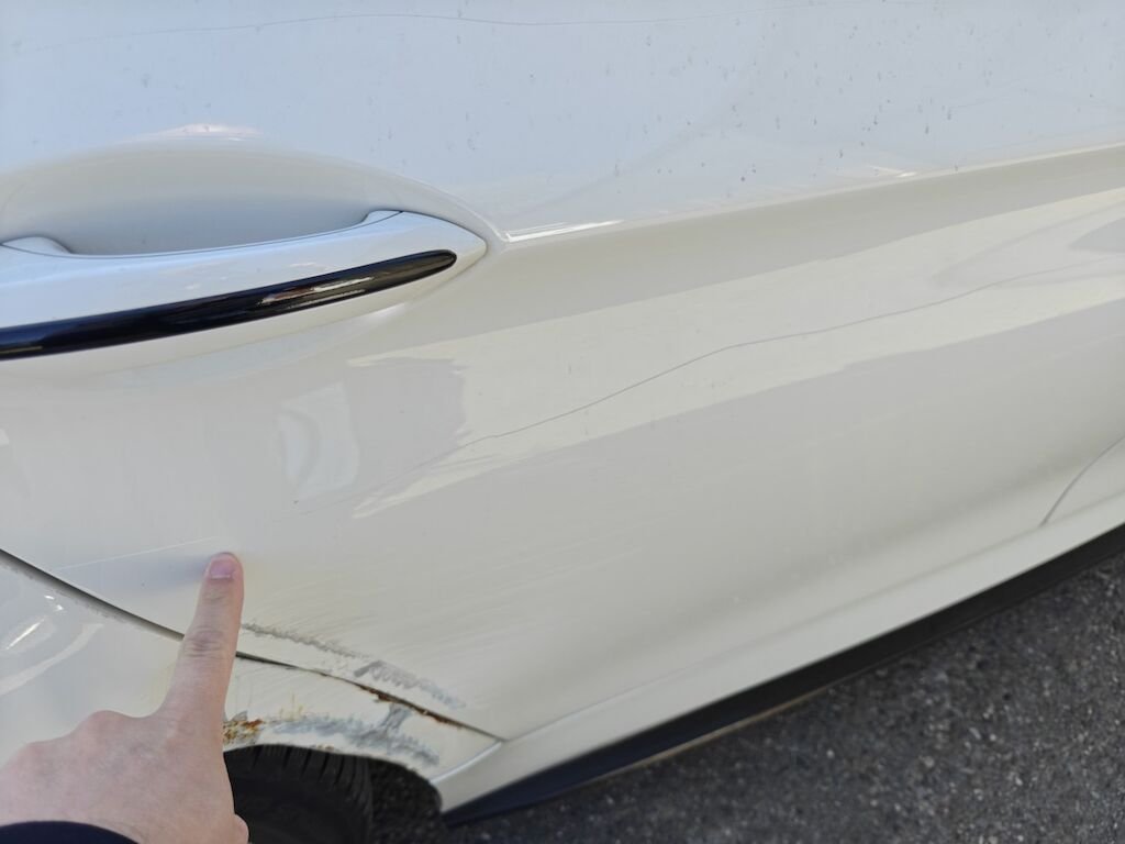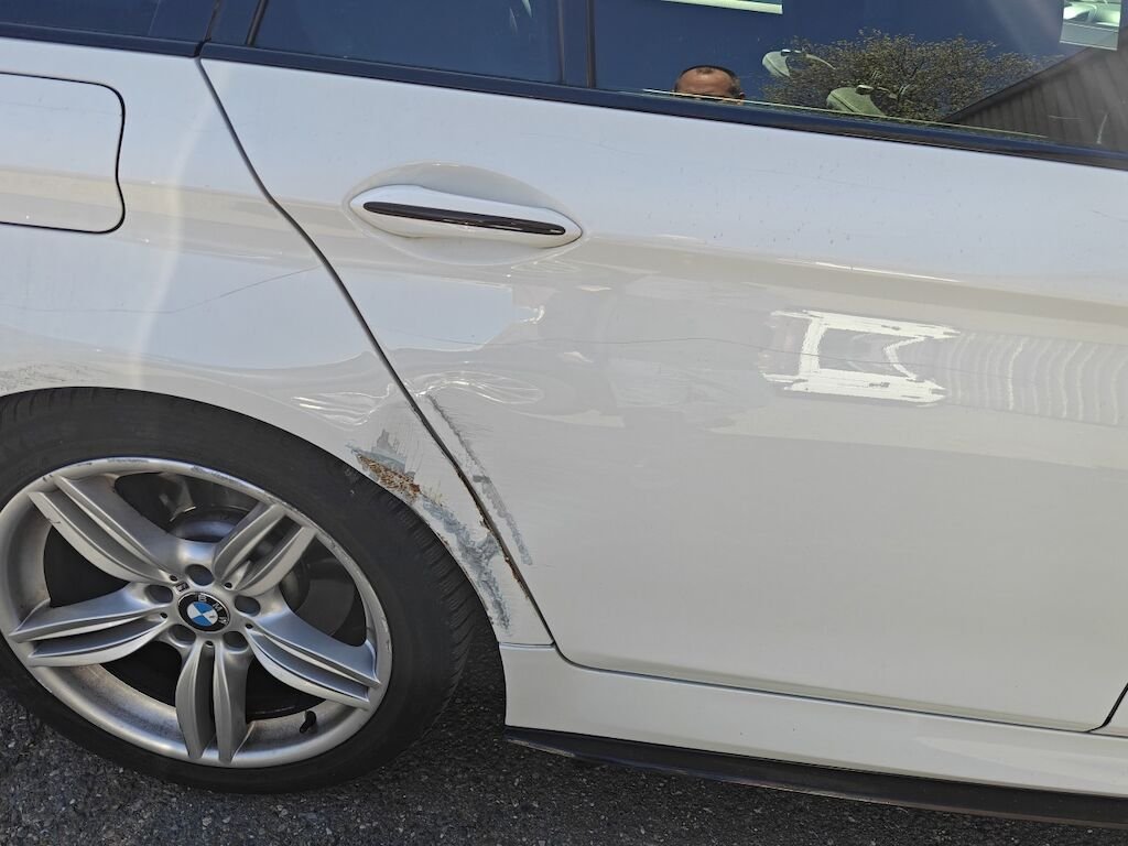 Türe, Seitenwand und Felge beschädigt.