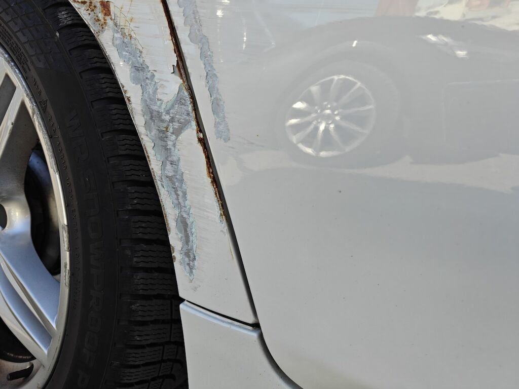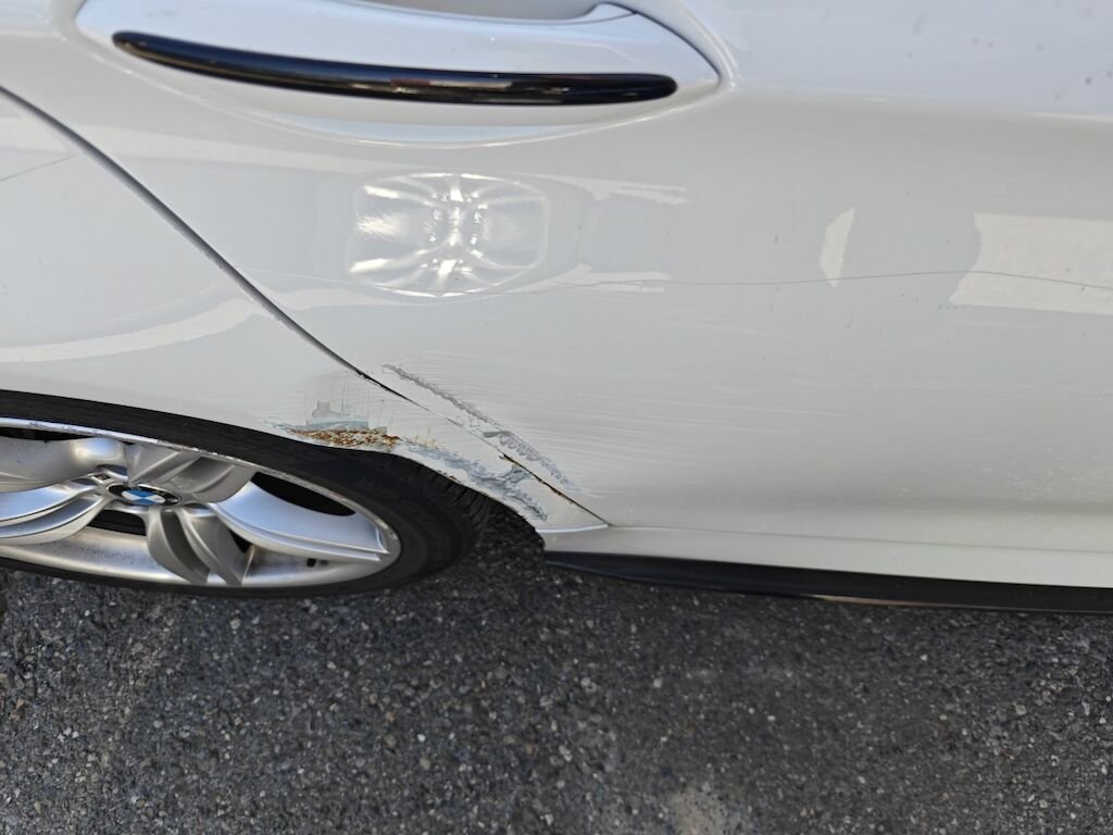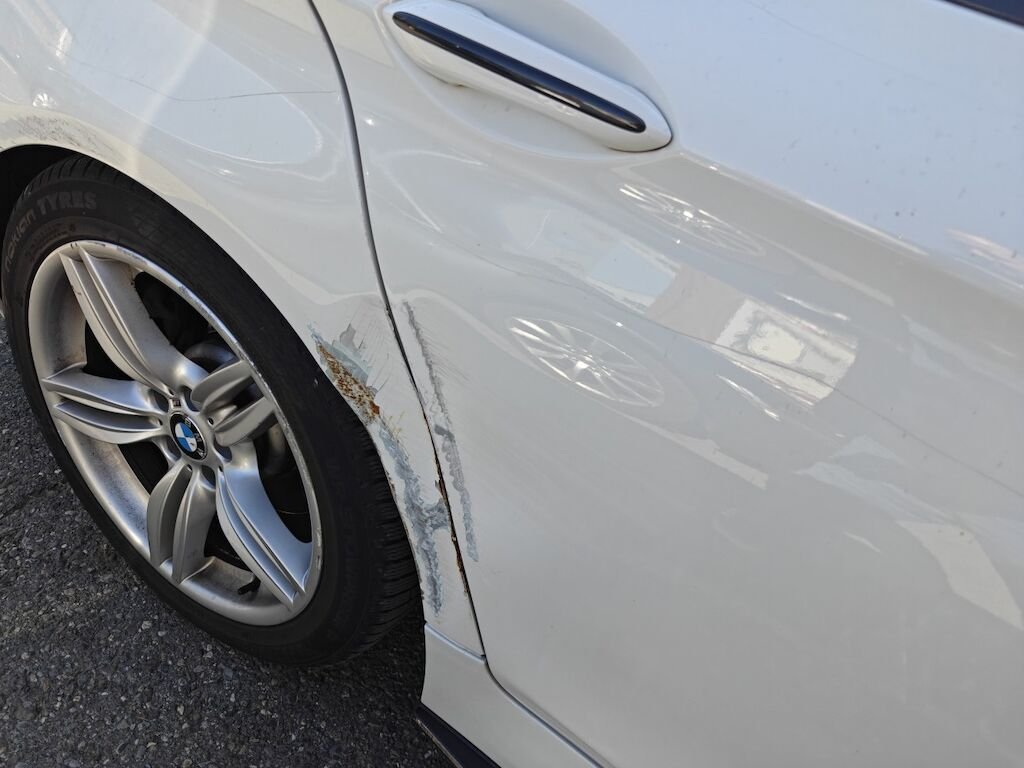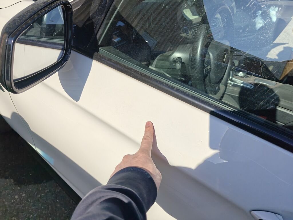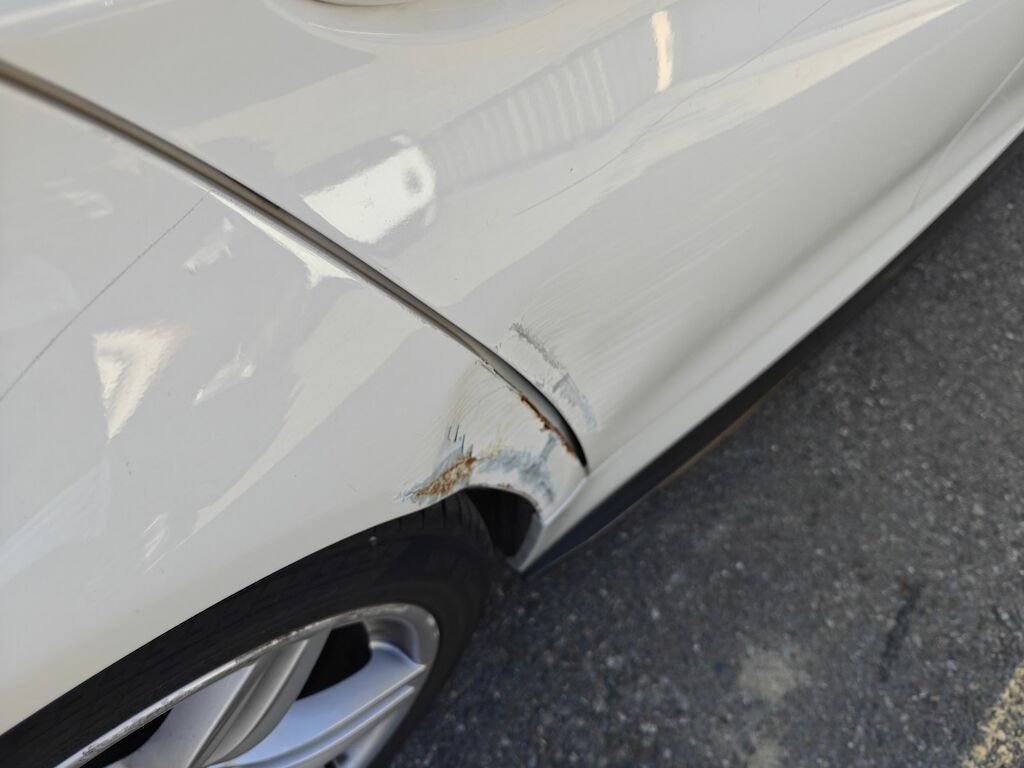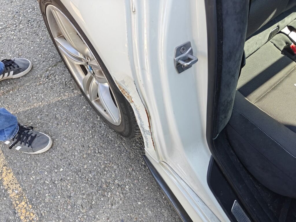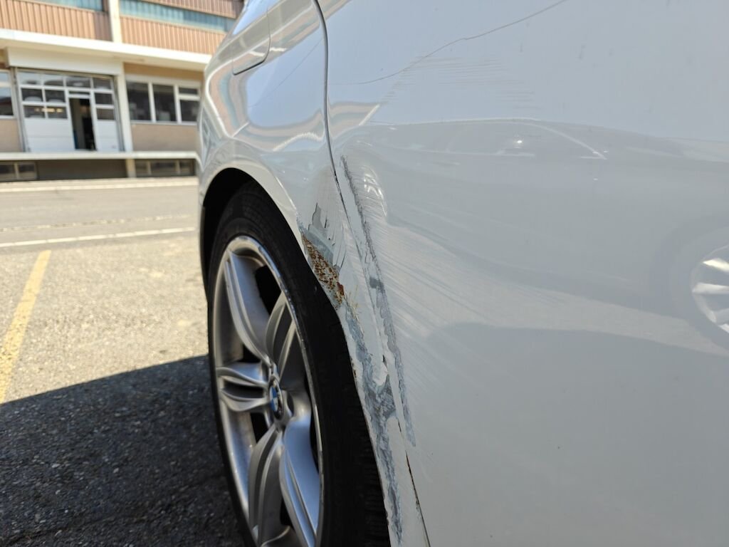 Türe, Seitenwand und Felge beschädigt.