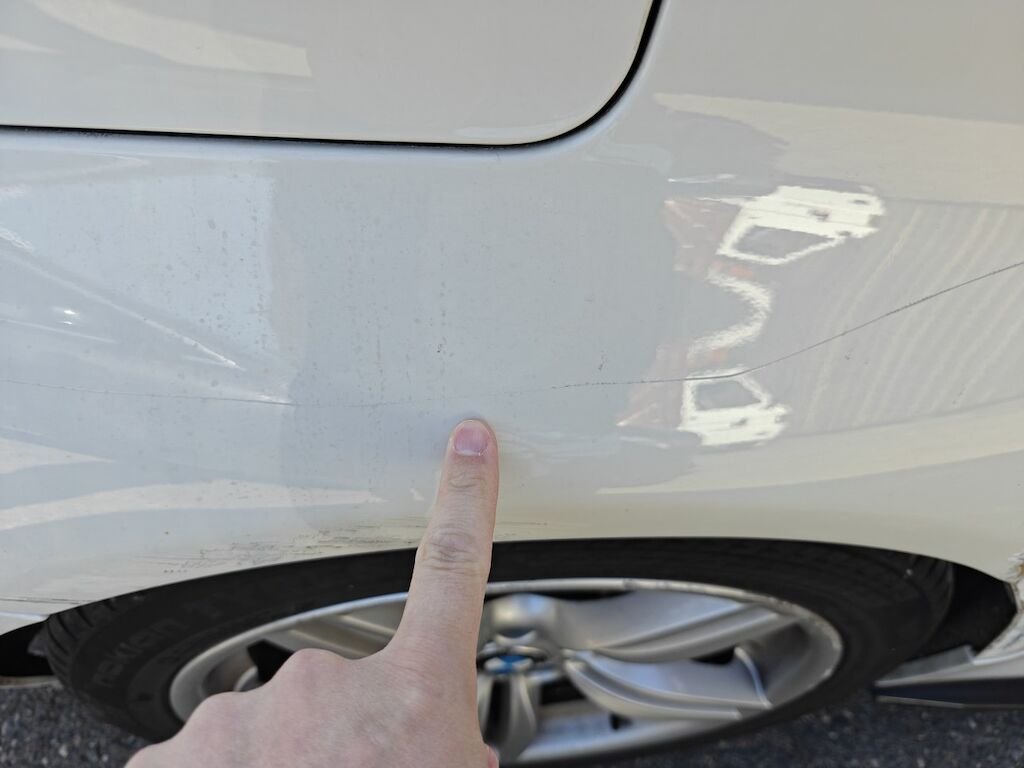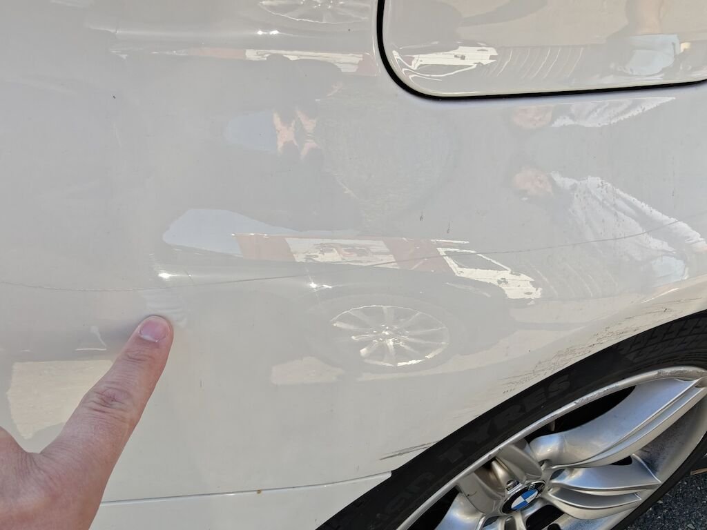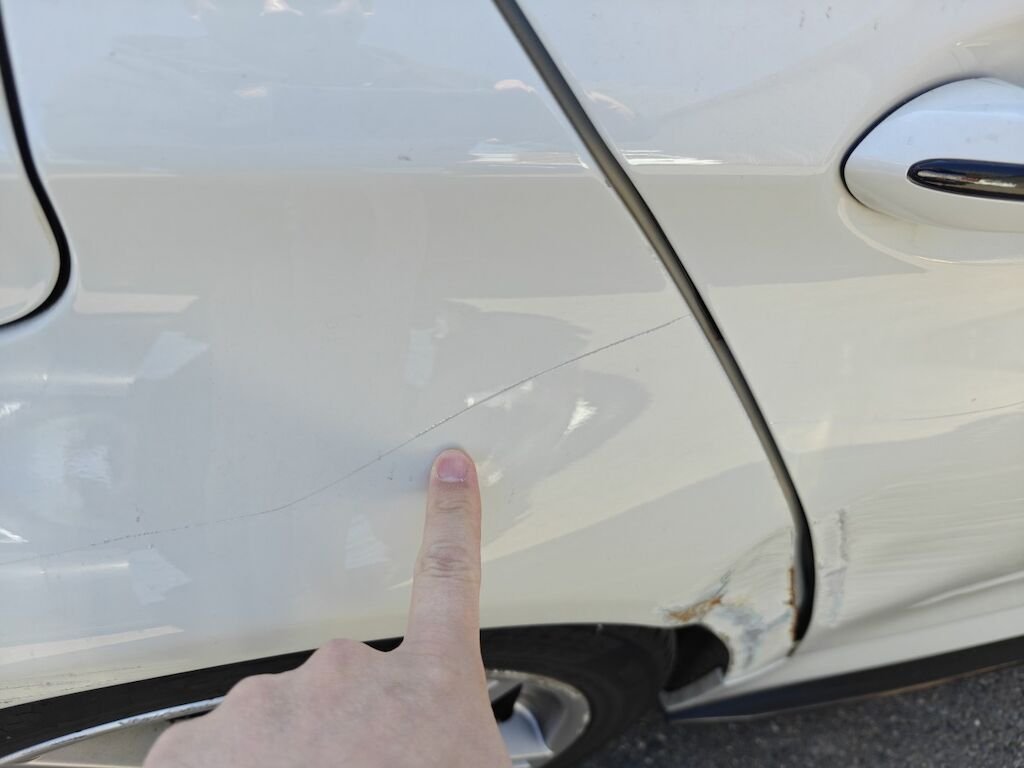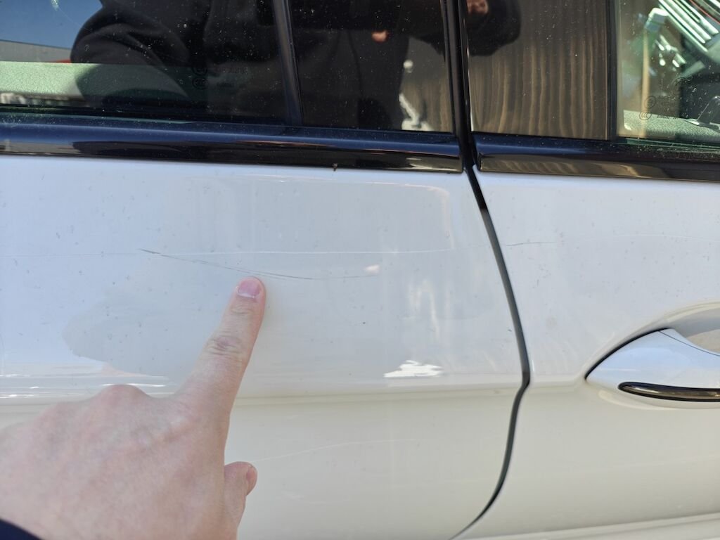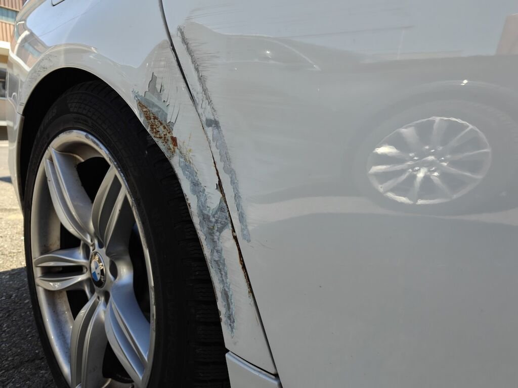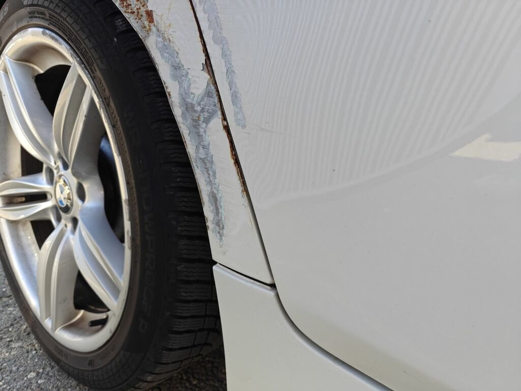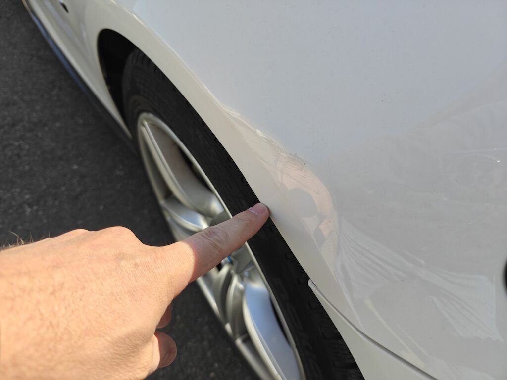 Türe, Seitenwand und Felge beschädigt.