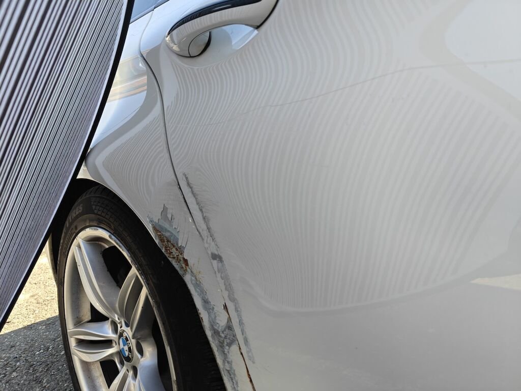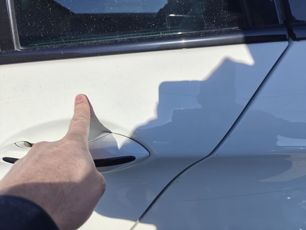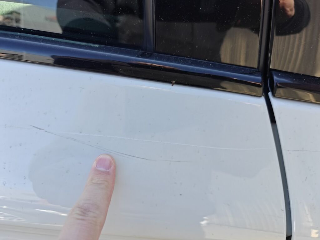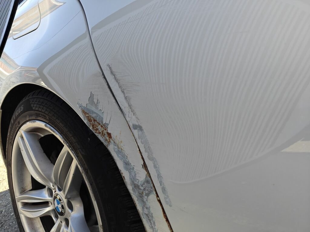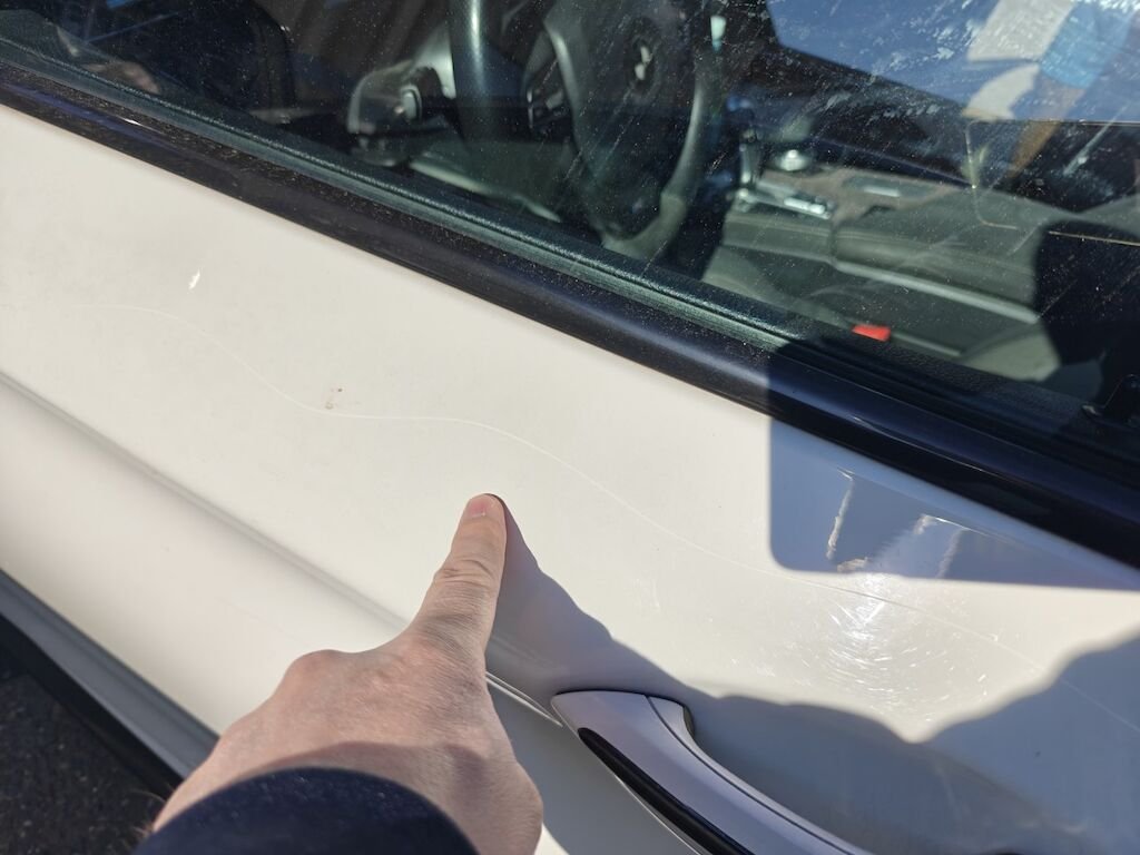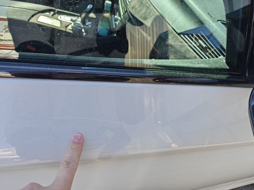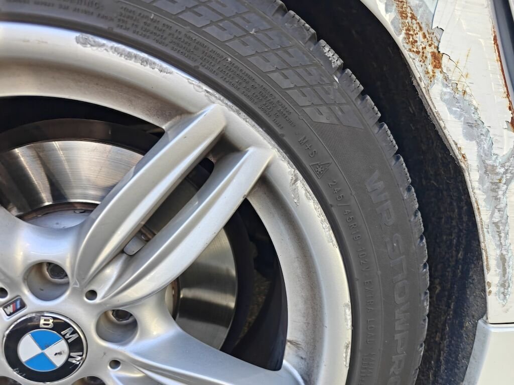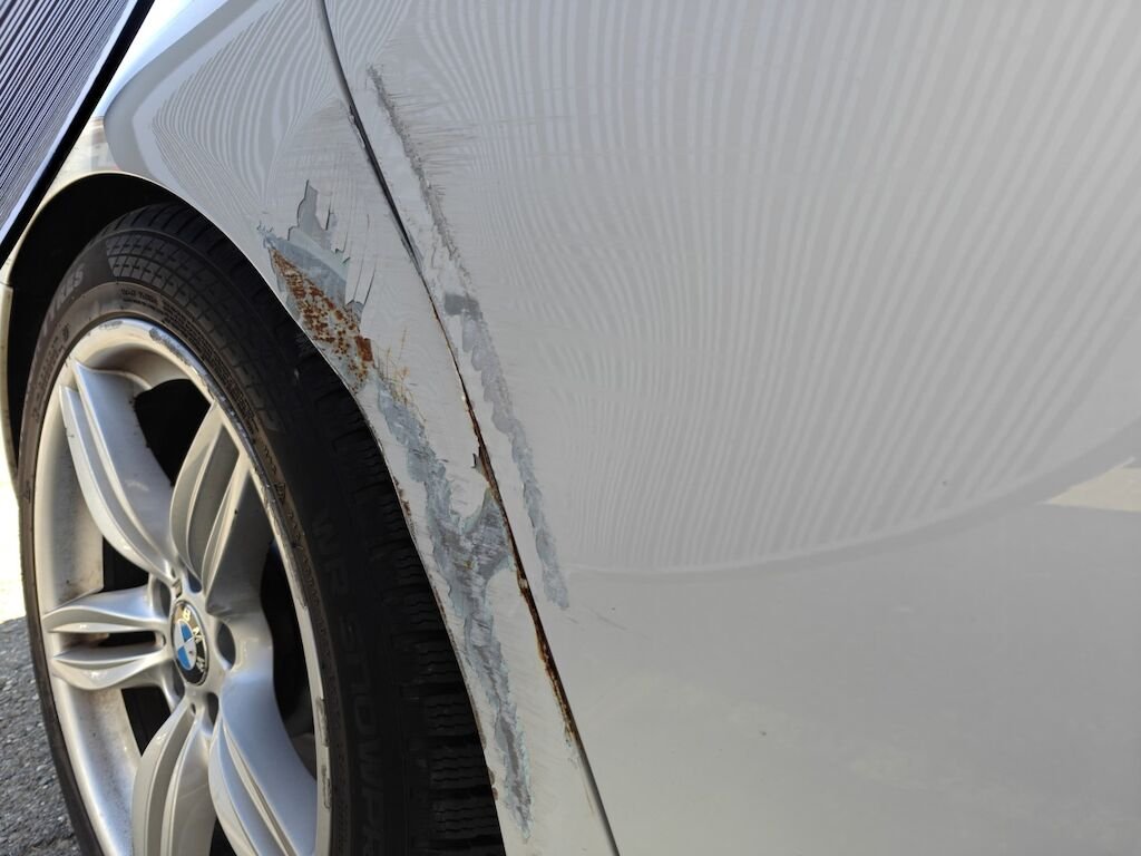 Türe, Seitenwand und Felge beschädigt.