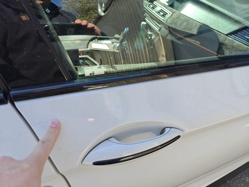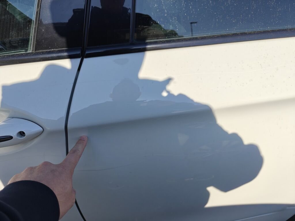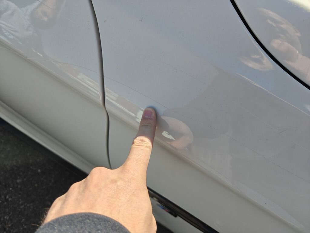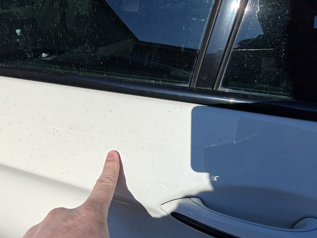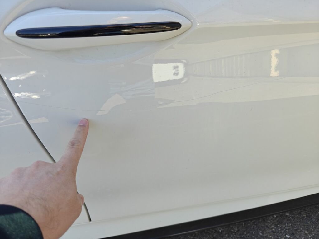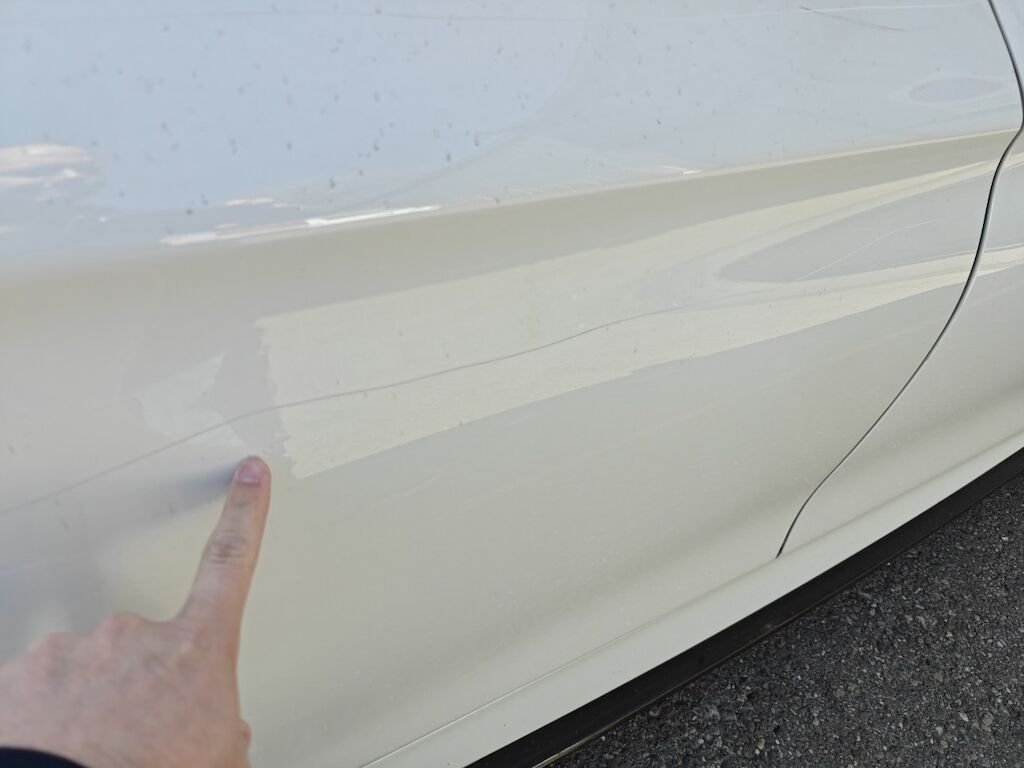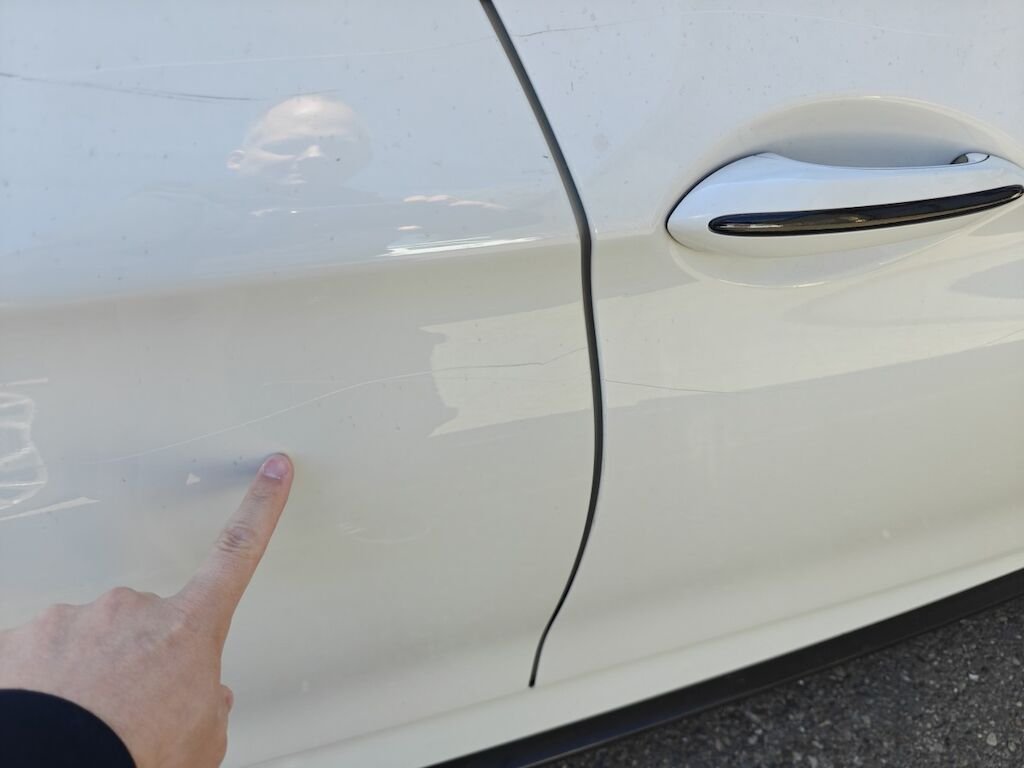 Türe, Seitenwand und Felge beschädigt.