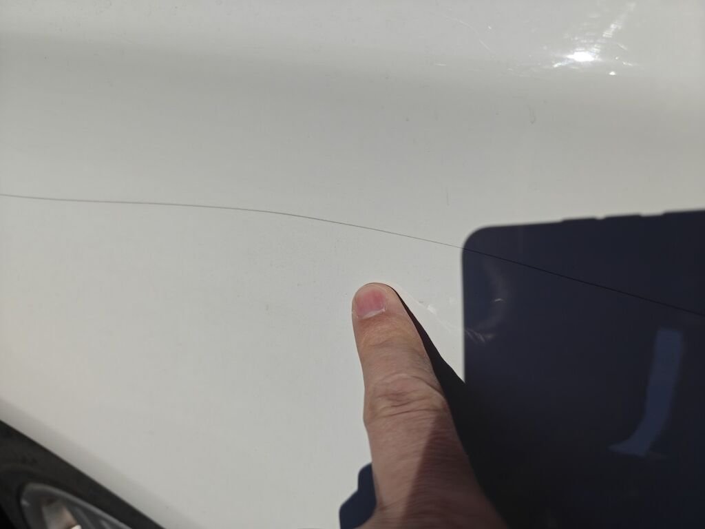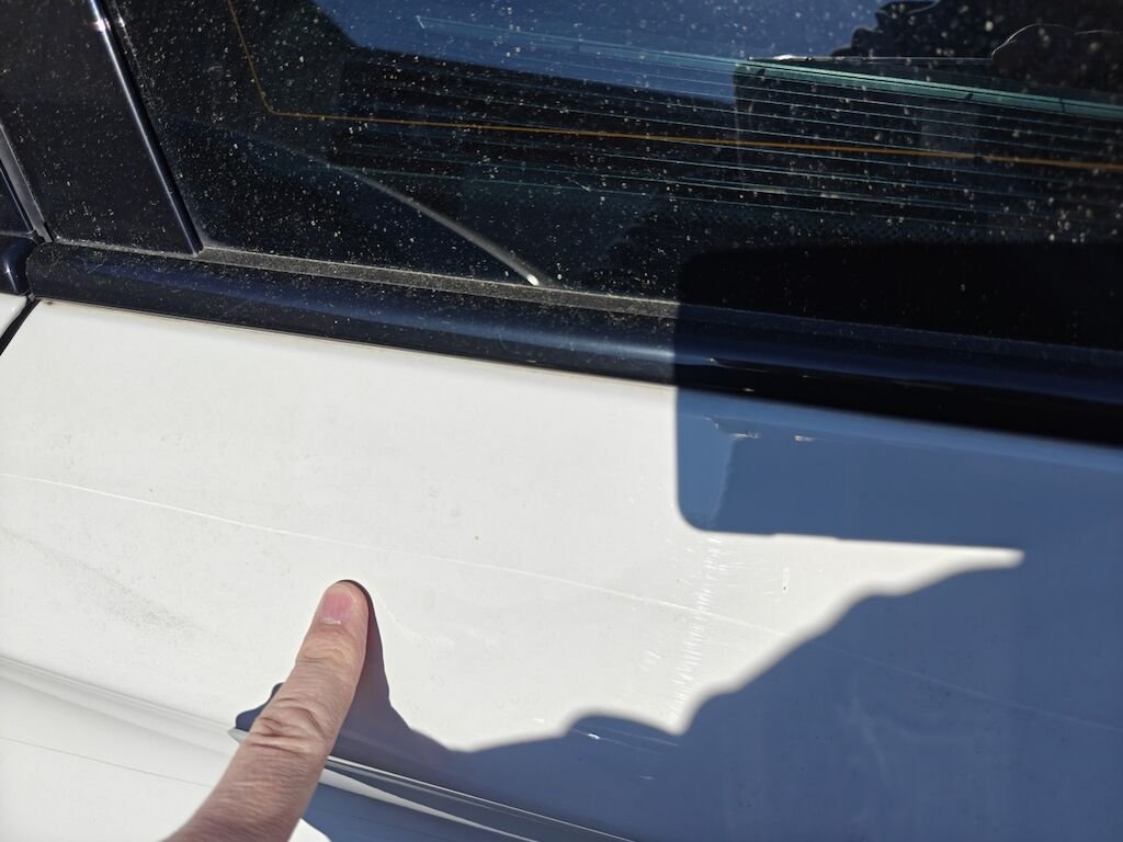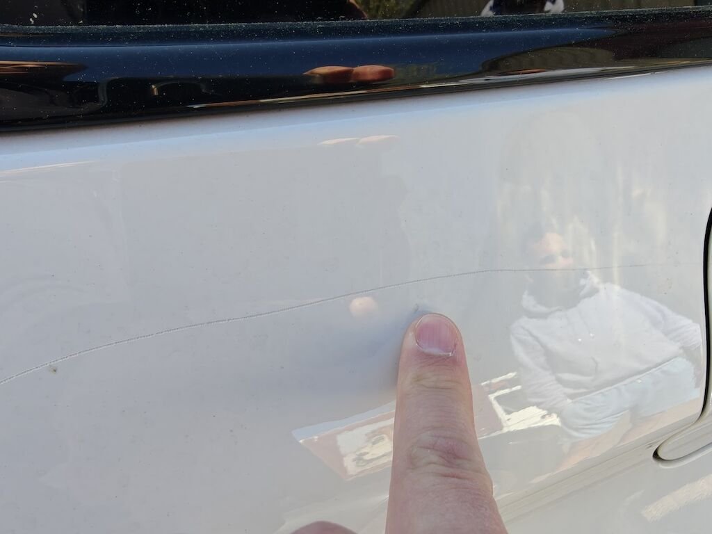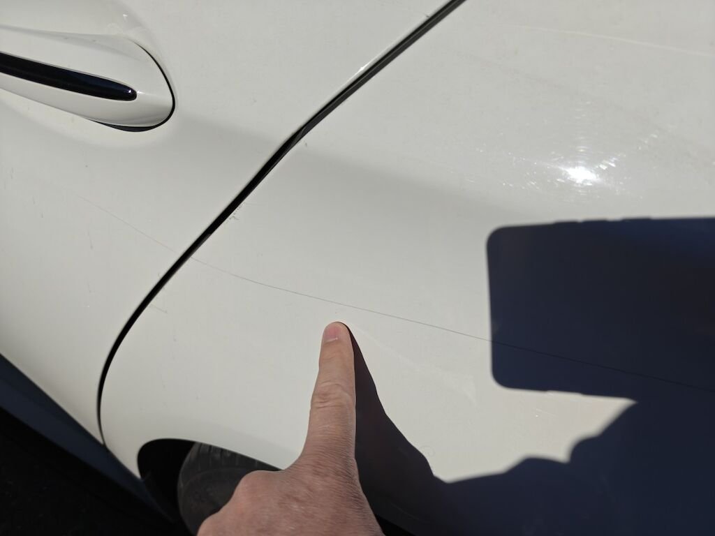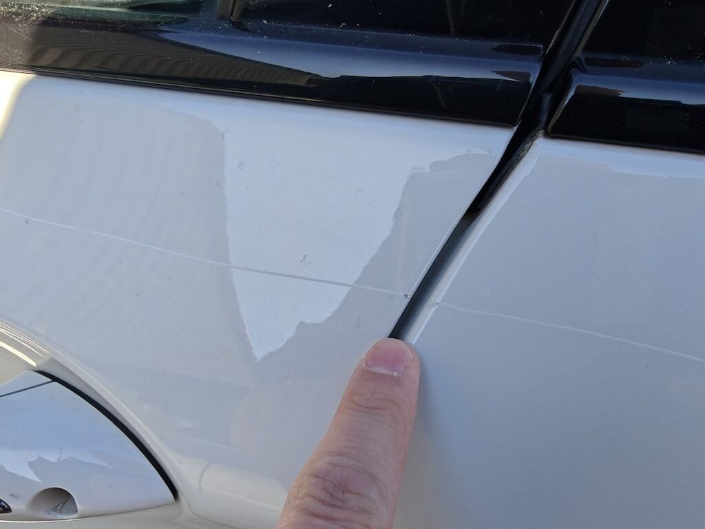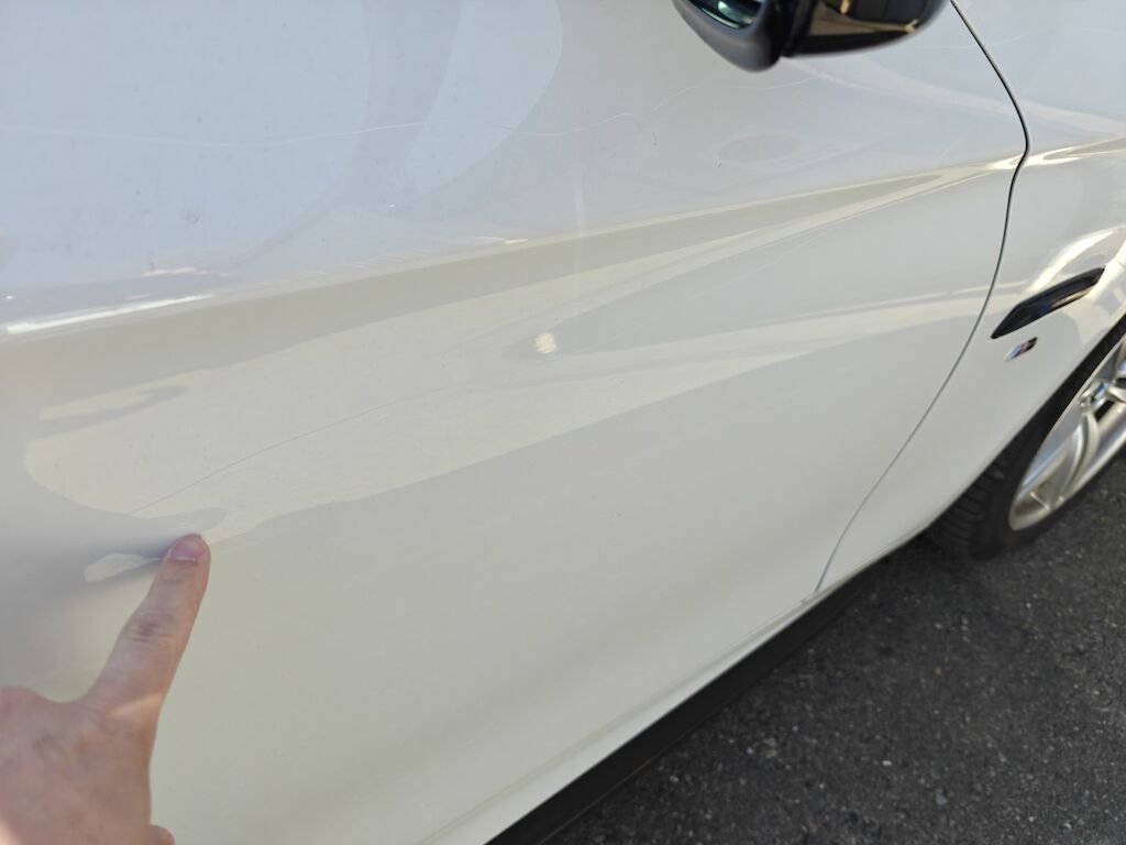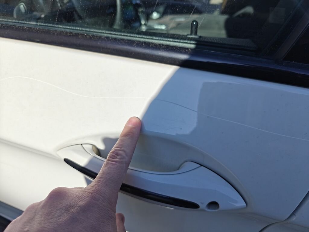 Türe, Seitenwand und Felge beschädigt.