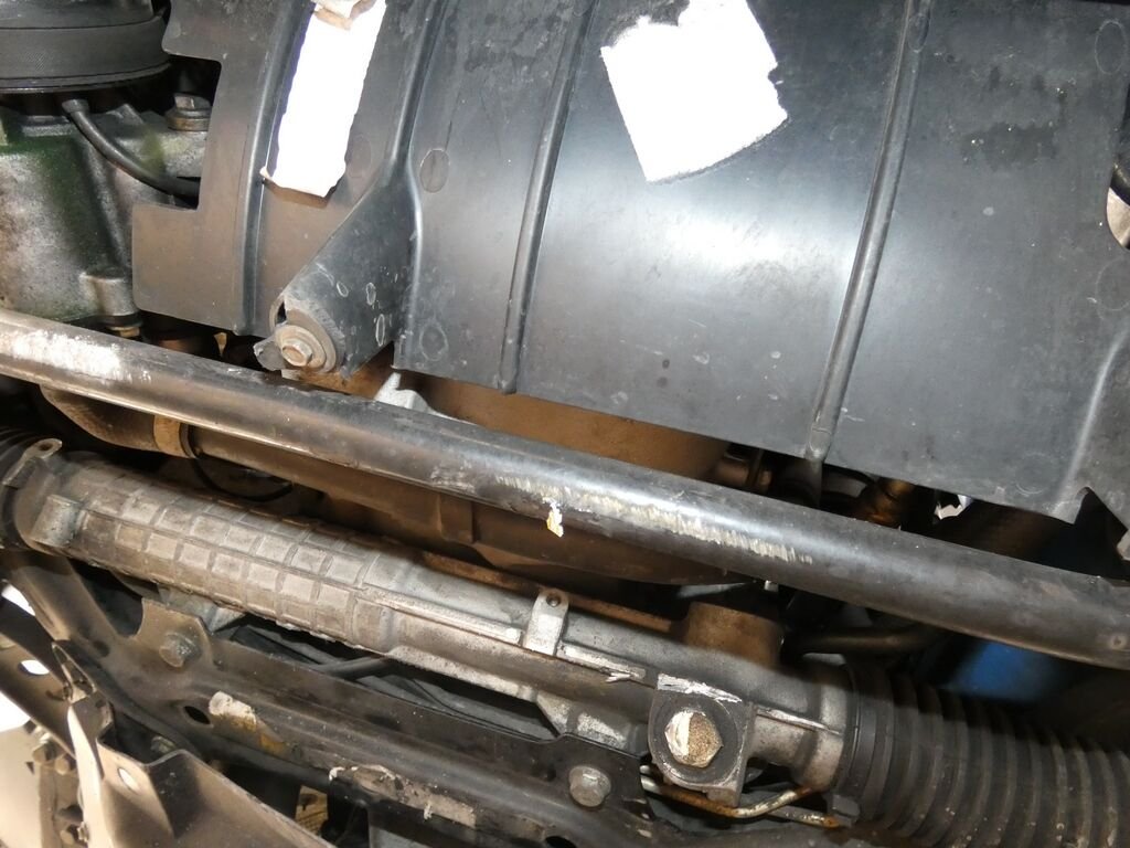 Choc avant et sous le véhicule, pare-chocs AV, face AV, radiateurs, mécanique de roue avant, crémaillère de direction assistée, longeron AVD, échappement