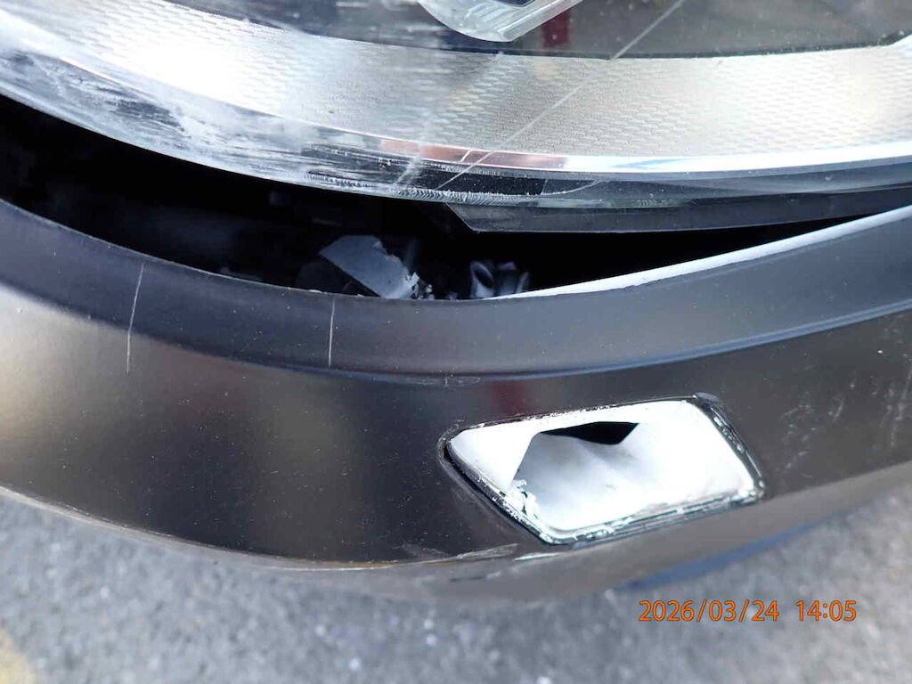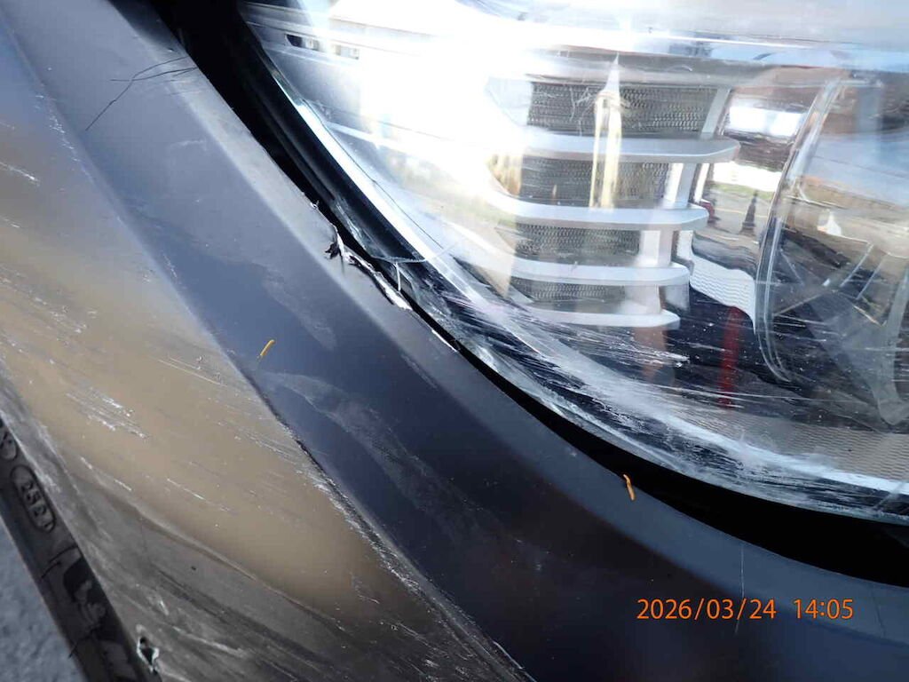 Scheinwerfer, Stossfänger, Kotflügel, Rad vorne rechts beschädigt