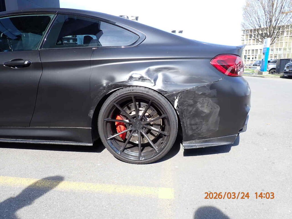 Seitenwand, Stossfänger, Felge hinten links beschädigt