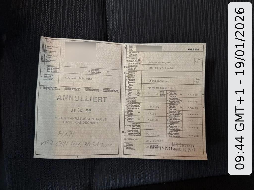 - Serial equipmentAirbag: Airbag Fahrer und Beifahrer, Aktive Kopfstützen, Aussenspiegel rechts und links beheizbar und elektrisch verstellbar, Stoff-Ausstattung Elektra, Reifendruckverlust-Warnsystem, Katalysator geregelt, Dynamische Stabilitätskontrolle (DSC), Bremsassistent (BAS), Abschliessbare Radschrauben, 3 Kopfstützen hinten, Airbag: Airbag Beifahrer deaktivierbar, Tagfahrlicht, ISOFIX Kindersitzvorrichtung, Lackierung: Uni-Lackierung, Einstiegsschienen, Lenkung, elektrisch unterstützt, Leichtmetallfelgen im Sternspeichen- design 317 17J mit Pneu, Dekor: Interieurleisten in Satinsilber matt, Bremsenergie-Rückgewinnung, Airbag: Seitenairbag für Fahrer und Beifahrer, 3 Speichen-Lederlenkrad, LED Blinker im Aussenspiegel, Start-/Stop-Knopf, Assist: Dynamische Traktionskontrolle (DTC), Automatische Stabilitäts-Control (ASC), Sicherheitstrennnetz oder /-gitter im Gepäckraum, Window-Kopfairbags, Anfahrassistent, Cupholder, Check-Control-System, Antiblockiersystem (ABS), Radio BMW Business CD, 8-Stufen-Automat sequentiell, Leuchtweitenregulierung elektrisch, AUX-Anschluss, Vordersitze höhenverstellbar, Make up-Spiegel links, Verbandskasten, Licht: Drittes Bremslicht LED, Bordcomputer, Lenkrad: Lenkrad längs- und höhenverstellbar, Nebelscheinwerfer, Elektrische Fensterheber vorne + hinten, Veloursfussmatten vorne und hinten, Gangempfehlung, Allradantrieb permanent, Make up-Spiegel rechts, Licht: Heckleuchten in LED-Technik - einteilige LED-Heckleuchten mit Rauchglas Komponenten - Heckleuchte mit Schlusslicht, Bremslicht, Fahrtrichtungsanzeiger (LED-Technologie), Rücksitzlehne geteilt abklappbar, Zentralverriegelung mit Fernbedienung, Dynamische Bremsleuchten, Wegfahrsperre elektronisch, Assist: Crash-Sensor, Bremsbelag-Verschleissanzeige, Assist: Cornering Brake Control (CBC), Hochgeschwindigkeitsabstimmung, Klima: Klimaanlage, 6 Lautsprecher, Wärmeschutzverglasung, Elektrische Lenkung (EPS)