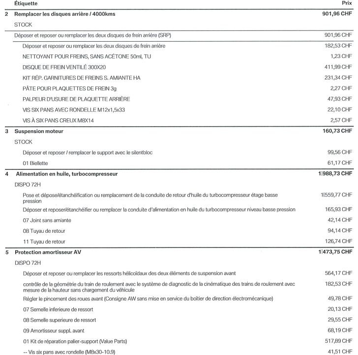 Conduite alimentation turbocompresseur (turbo en ordre), amortisseur avant, suspension moteur, freins arrière