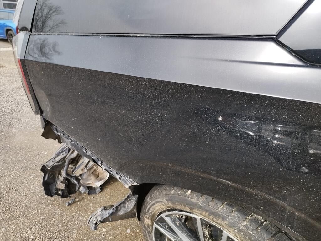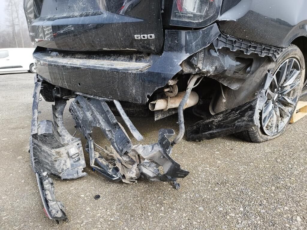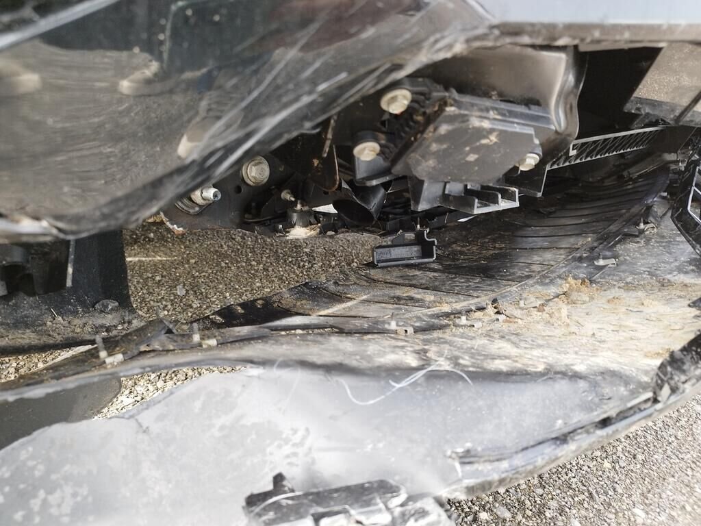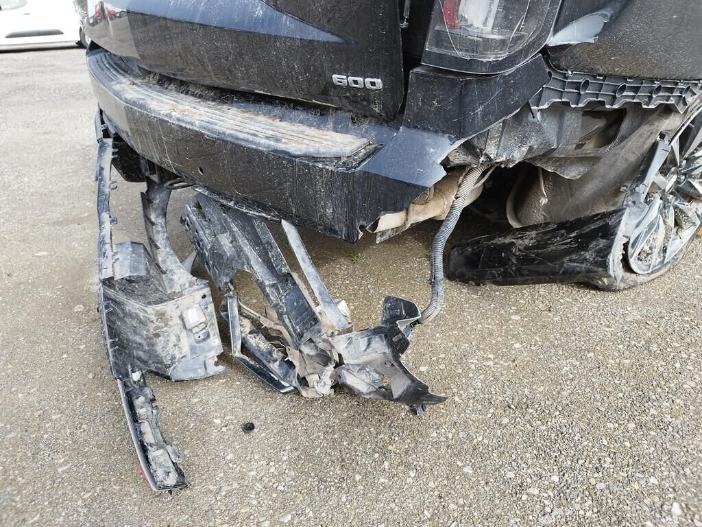 Die Stossstange vorne ist abgerissen, diverse Anbauteile sind gerissen, die ganze rechte Seite ist deformiert, beide Räder rechts sind beschädigt, beide Aufhängungen rechts sind beschädigt, die Stossstange hinten ist abgerissen, die Heckklappe ist deformiert, die Heckleuchte rechts ist gerissen, der Endtopf rechts ist deformiert, die Seitenwand hinten links ist gestaucht, beide Kopfairbag sind ausgelöst, der Seitenairbag links ist ausgelöst, alle Gurtstraffer sind ausgelöst, die Frontscheibe ist gerissen.