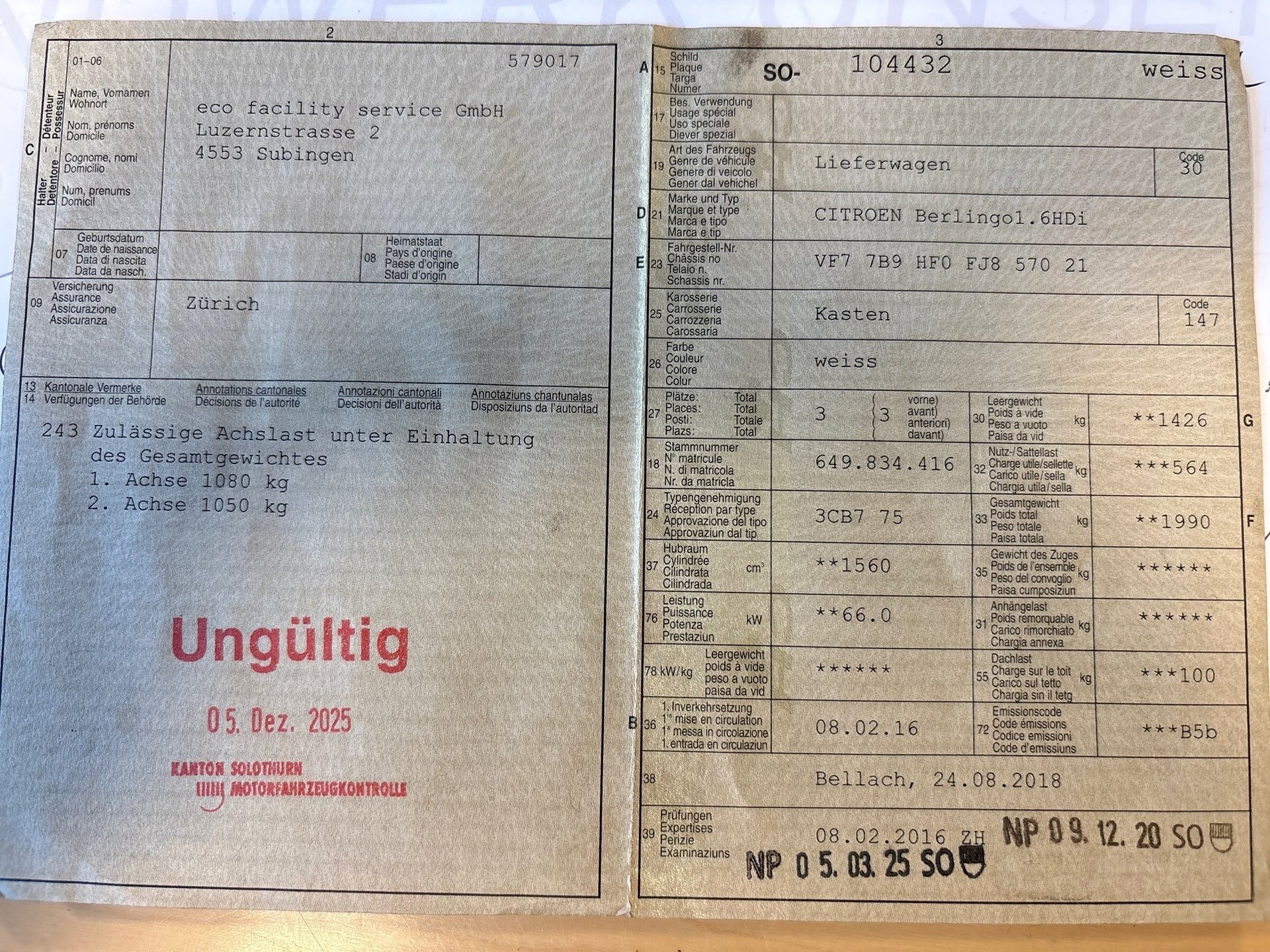 2016 CITROEN Berlingo1.6HDi
