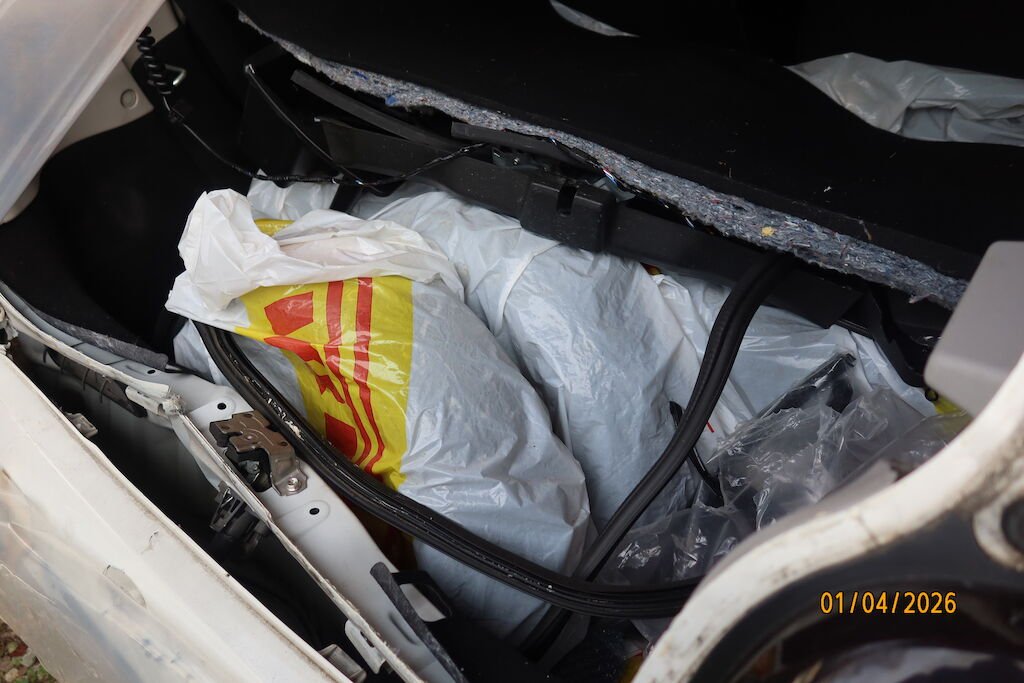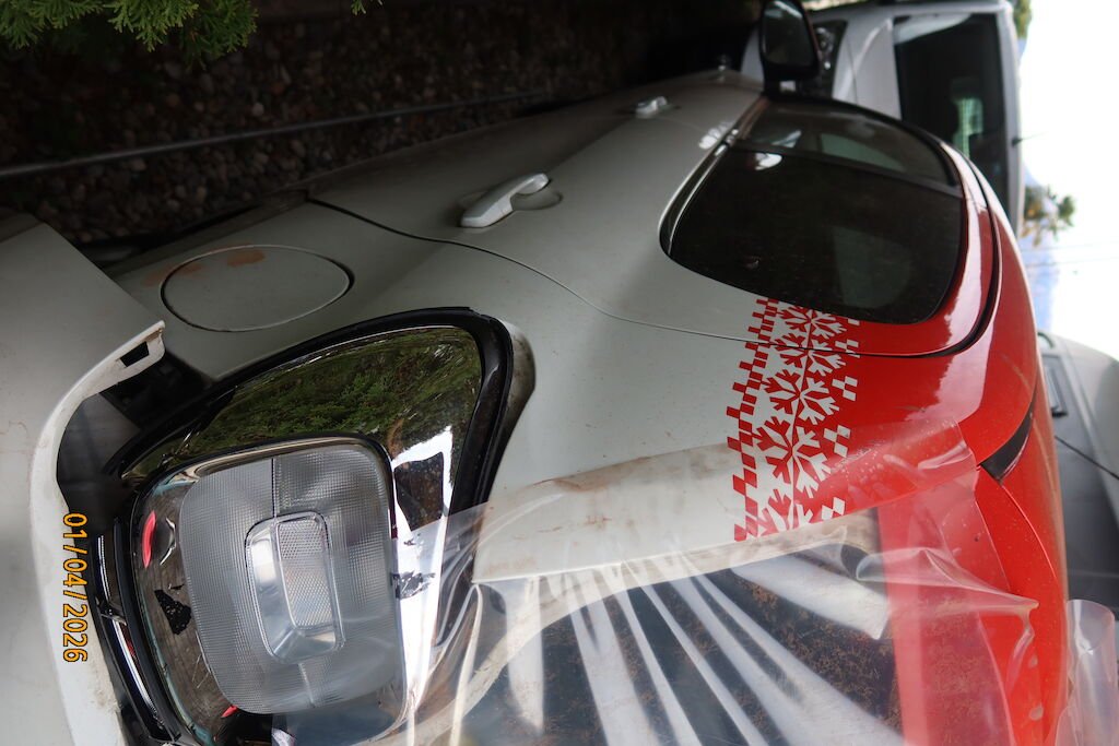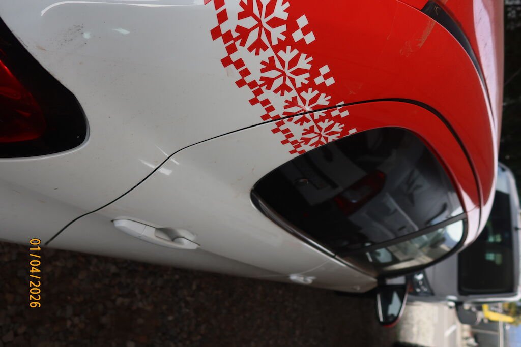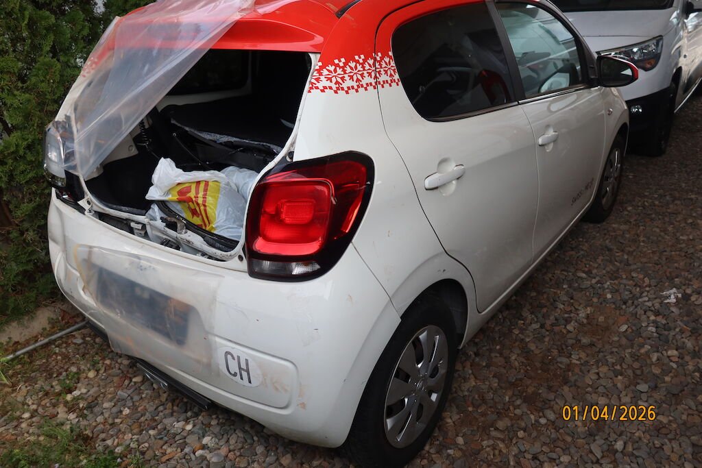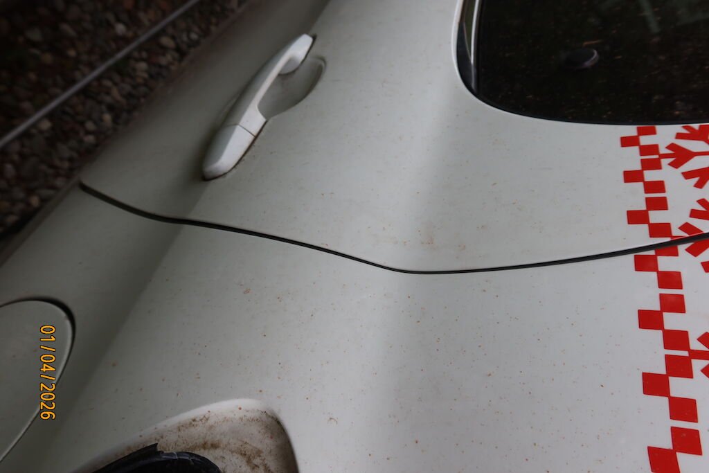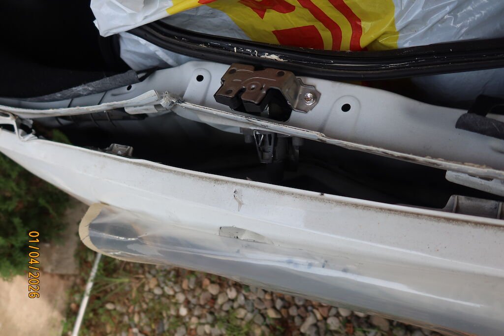 schiacciato e deformato portello posteriore, rottura scudo paraurti, traversa, guide, deformazione lamiera dorsale , pianale interno, rigonfiato parafanghi posteriori.