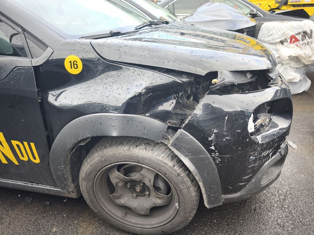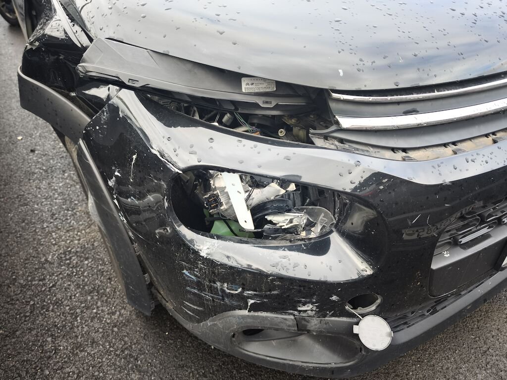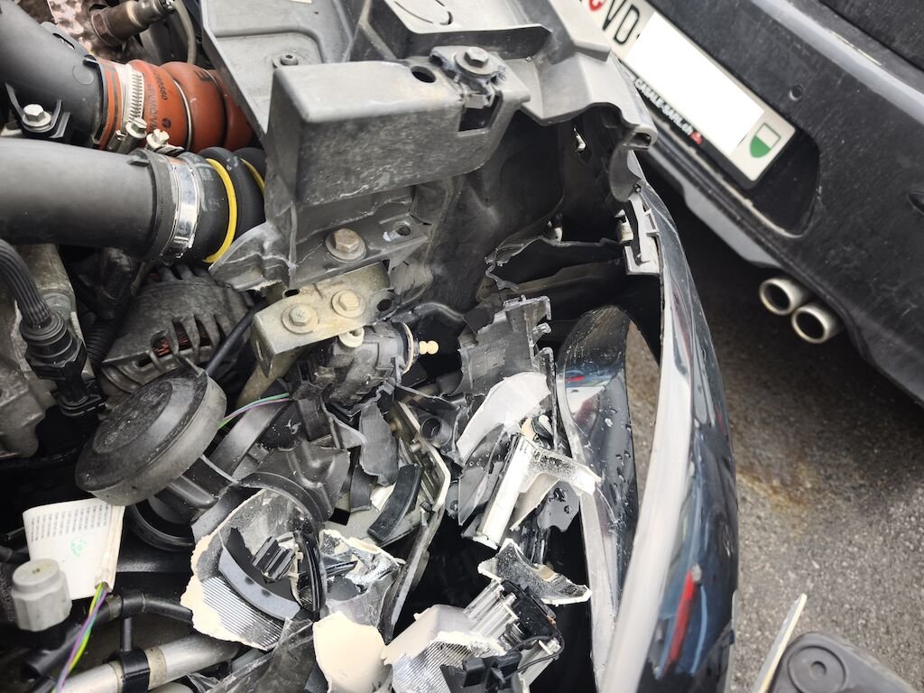 Capot, ailes avant droite et gauche, pare-chocs avant, renfort de pare-chocs, tôle frontale, longerons avant, phares avant gauche et droite, radiateurs, joue d'aile droite, porte avant droite, aile arrière droite, pare-chocs arrière droite, jantes avant et arrière droite, etc...