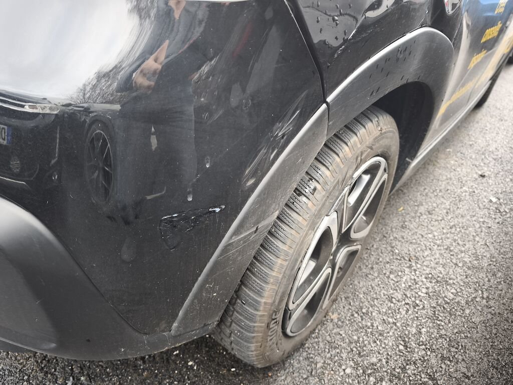 Reserve sur la mécanique de roue avant droite et sur l'essieux arrière.