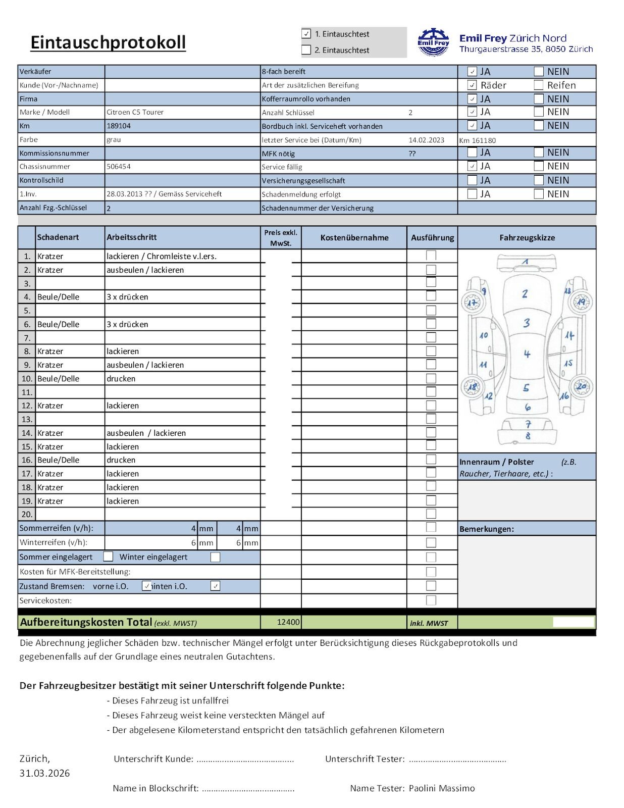 - 1. Inv. 28.3.2013 gemäss Serviceheft