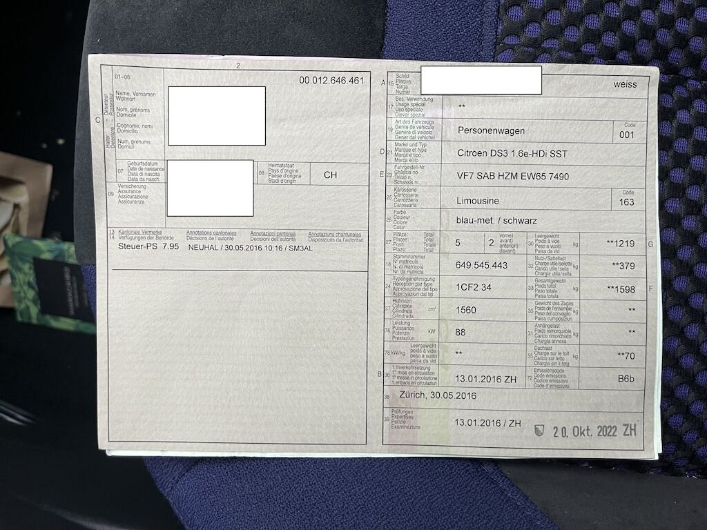 Einparkhilfe ist defekt - Typenschein1CF234