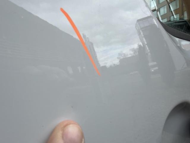 Linke Hecktür Delle und Kratzer vorhanden.