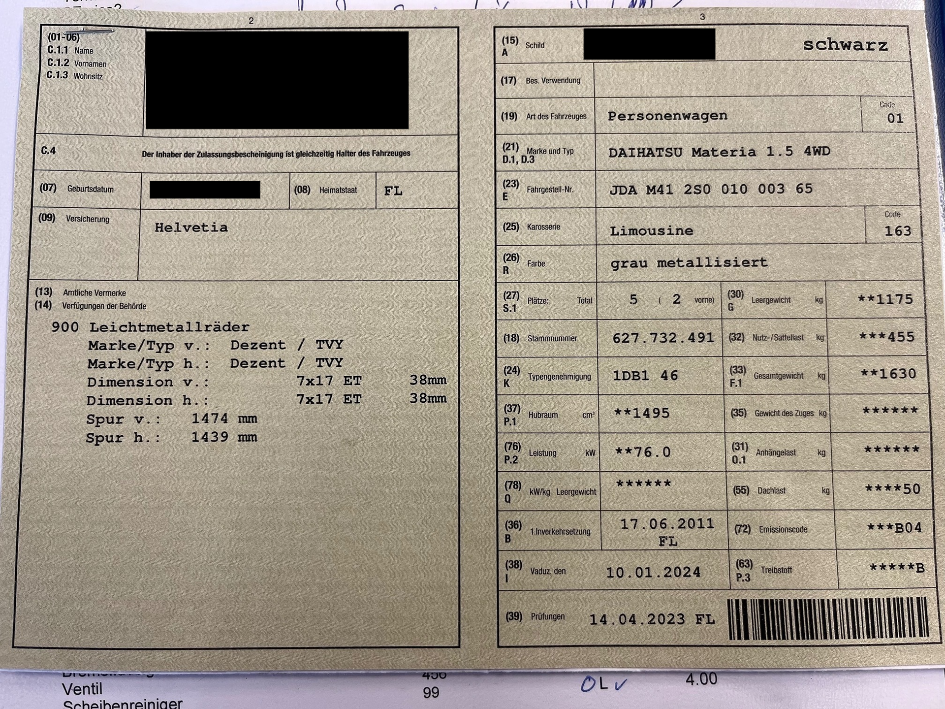 2011 DAIHATSU Materia 1.5 4WD