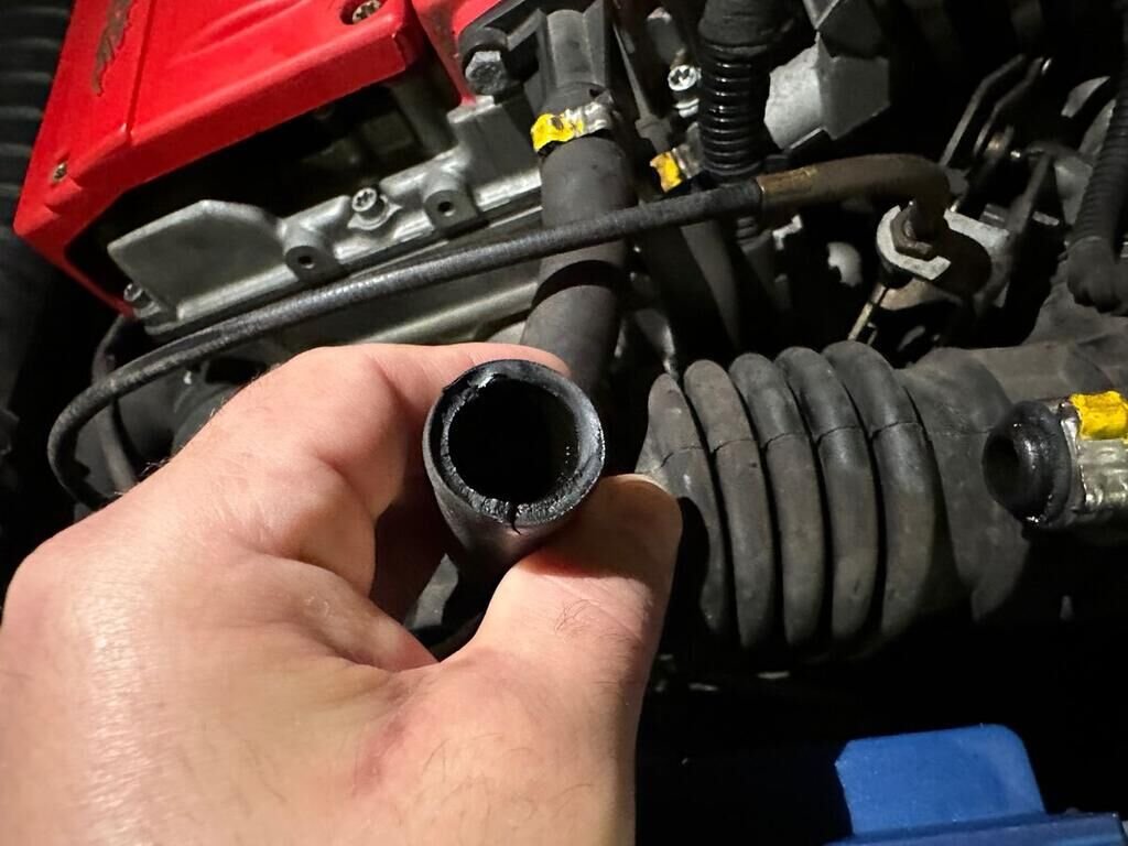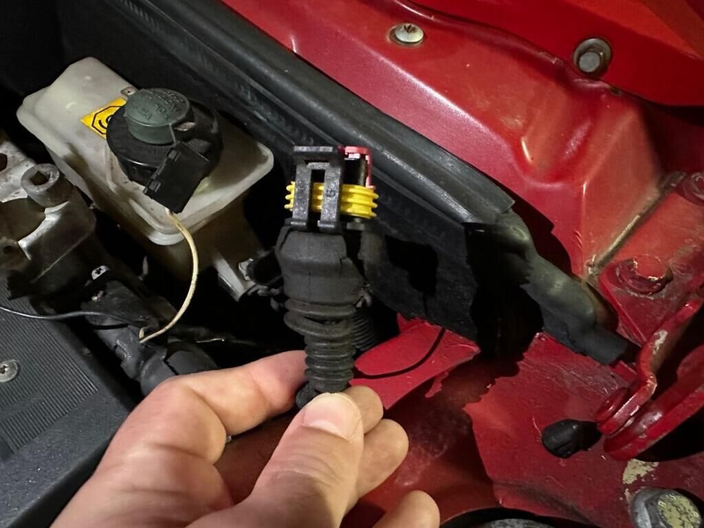 Im Motorraum wurden der Luftansaugschlauch sowie die Motorhaubenstütze beschädigt. Zudem ist der Motorkabelstrang ausgesteckt und weist Sprödigkeit auf.