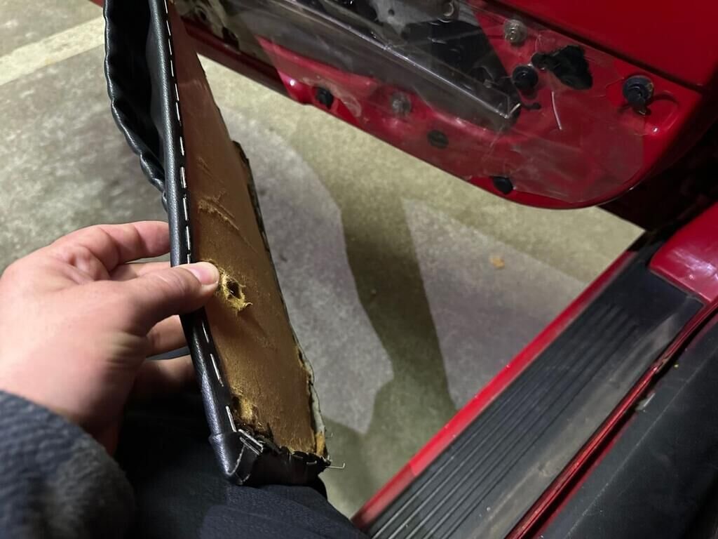 Durch Fremdeinwirkung wurden diverse Montageteile im Innenraum beschädigt, darunter Türabdeckungen, Lautsprecher, Innenspiegel, Lüftungsabdeckungen, der Handbremshebel, das Glas der Tachoeinheit sowie Türdichtungen.