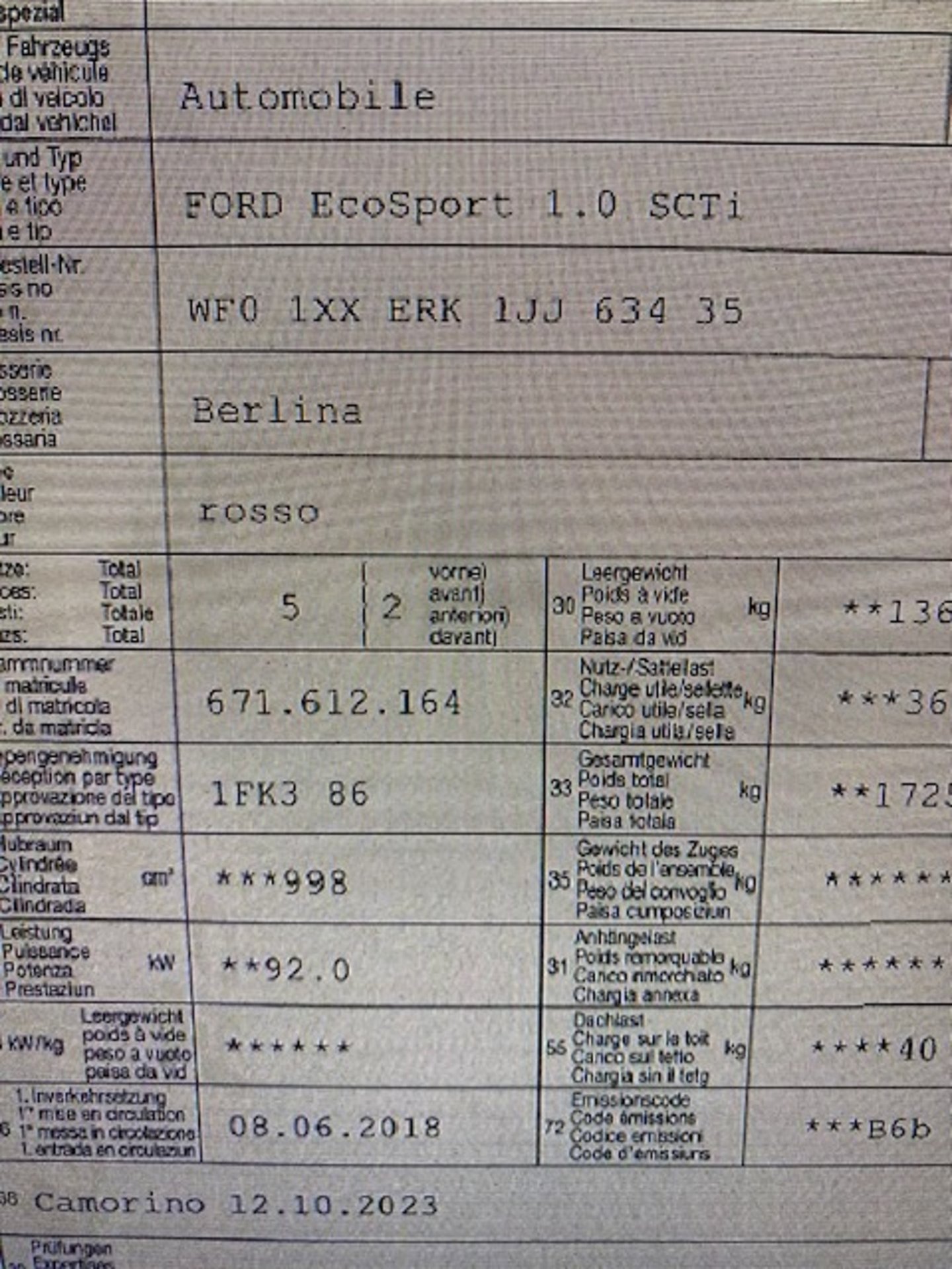 2018 FORD EcoSport 1.0 SCTi