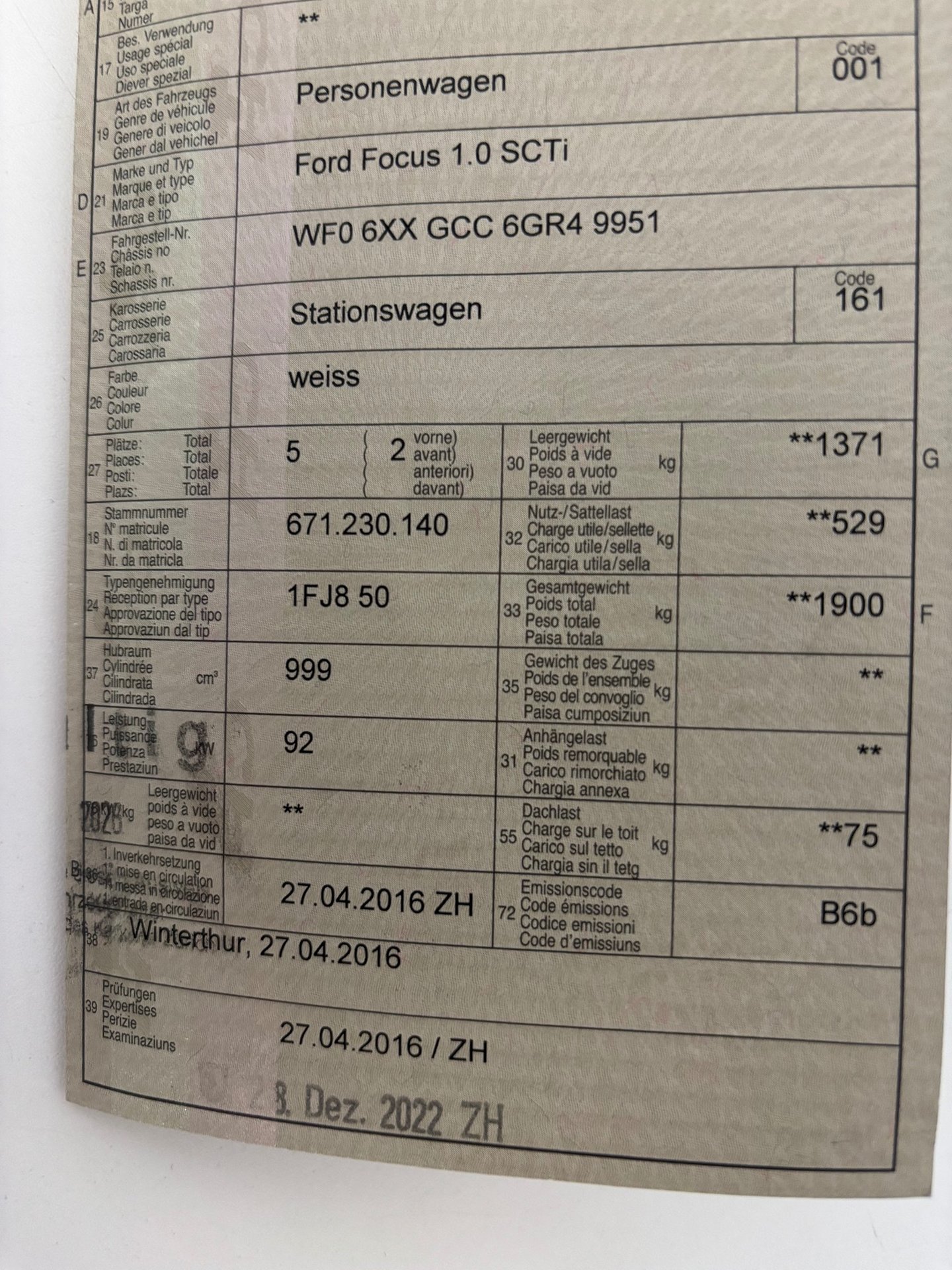 2016 FORD Focus 1.0 SCTi
