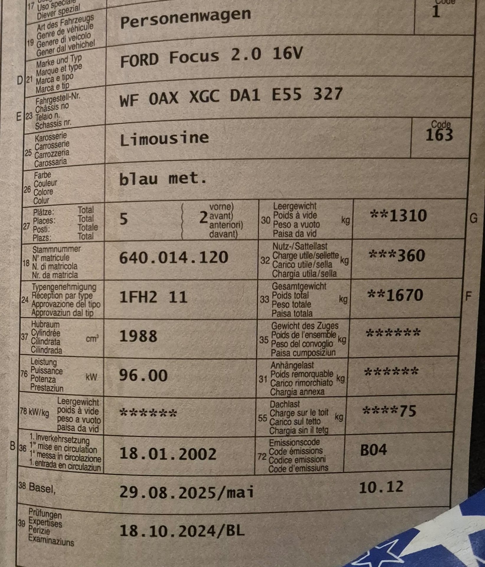 2002 FORD Focus 2.0 16V