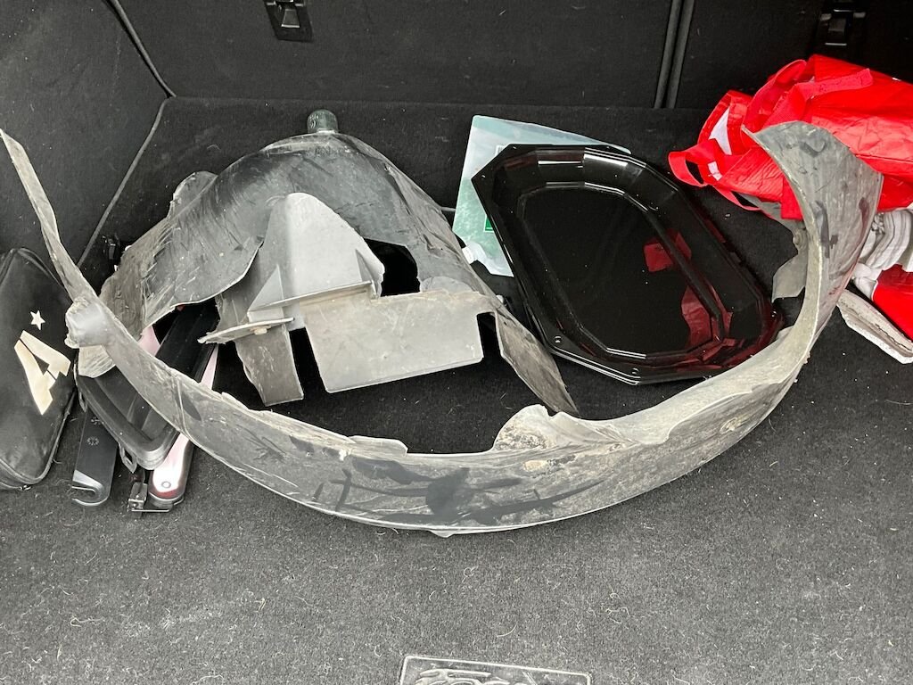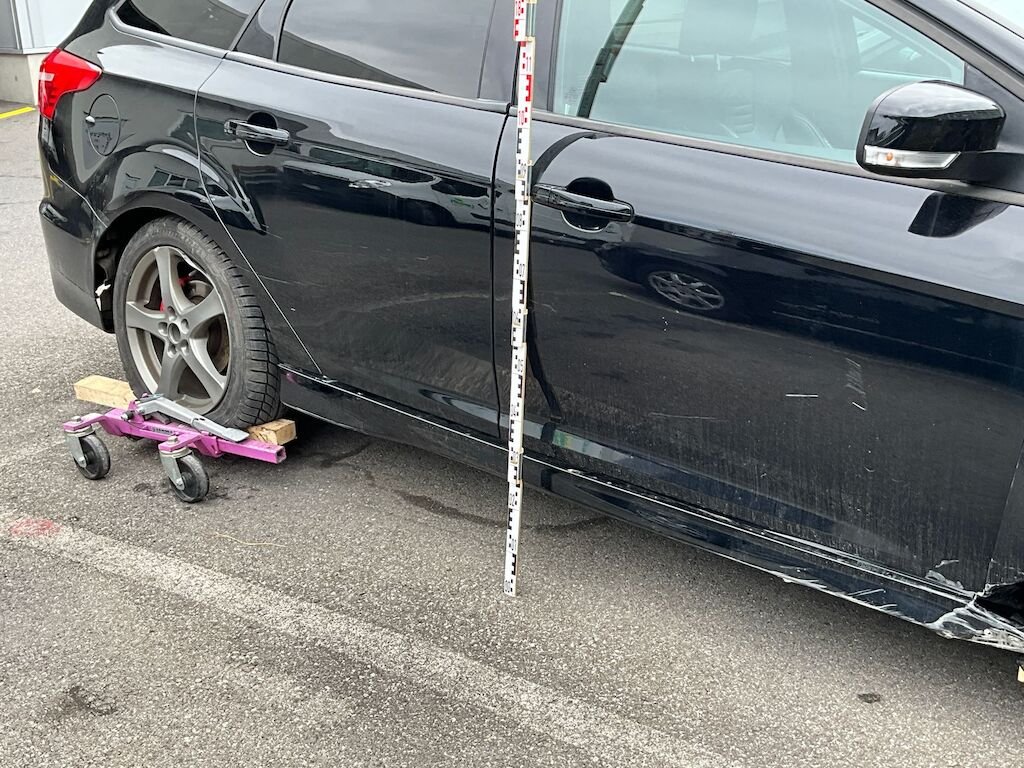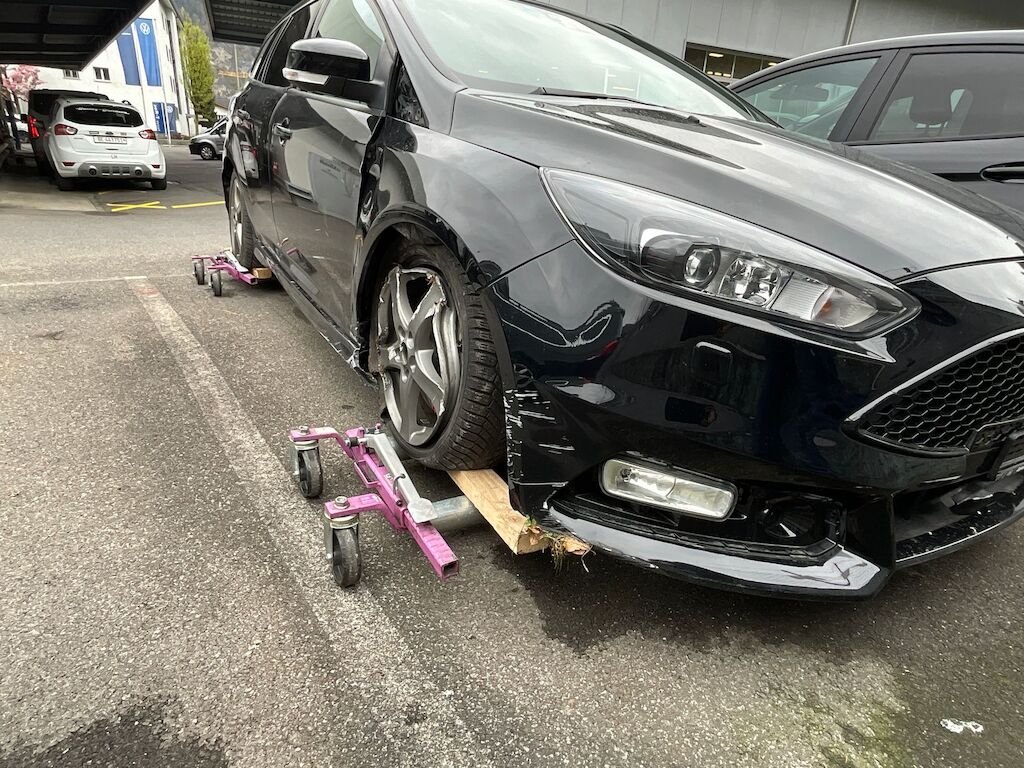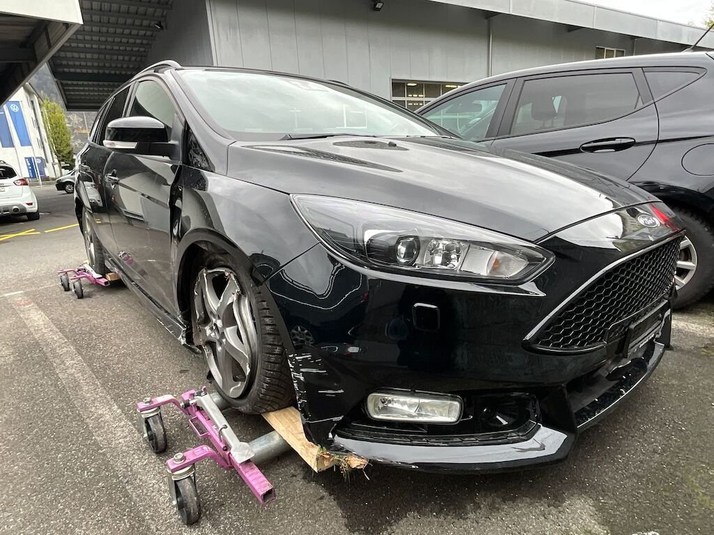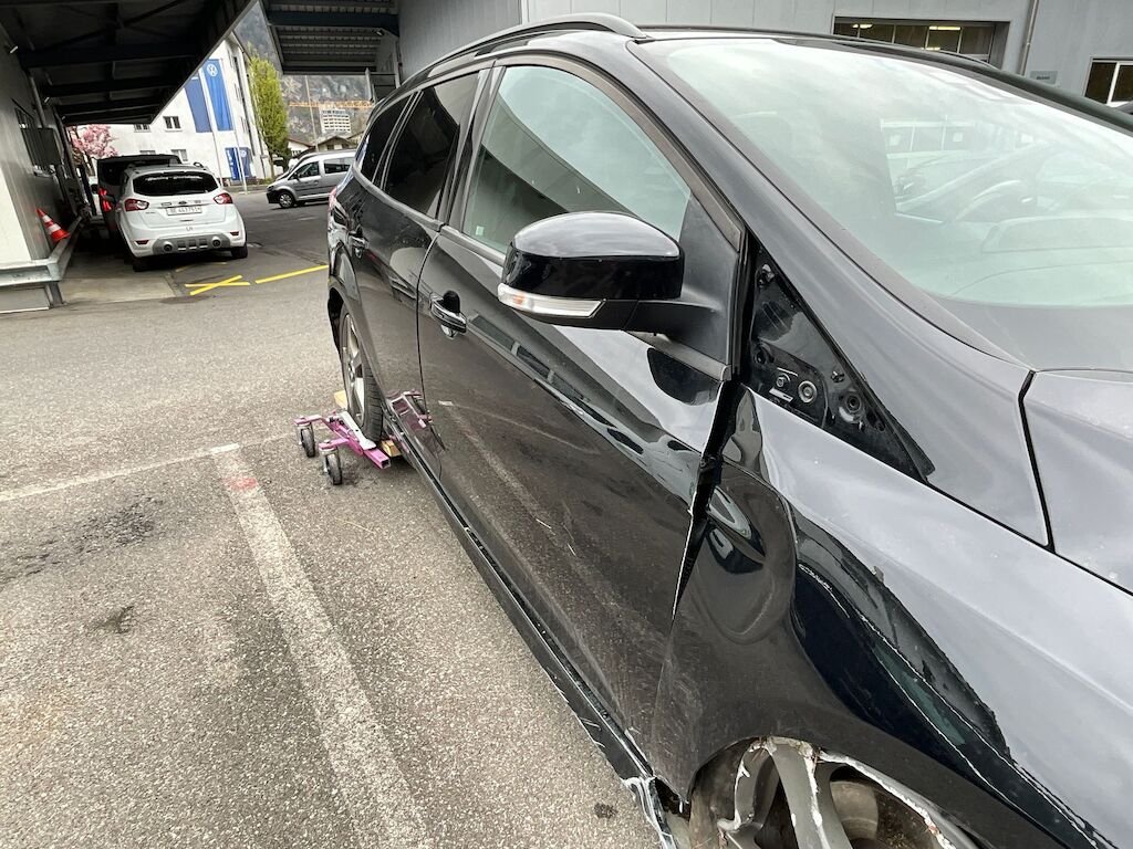 Kollisionsschaden Seite rechts mit Beschädigung von Stossfänger vorne, komplette Radaufhängung vorne,Kotflügel, beide Türen rechts, Seitewand rechts, Felgen vorne und hinten sowie diverse Anbauteile.