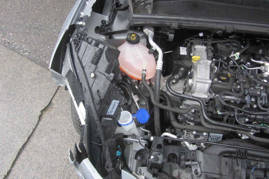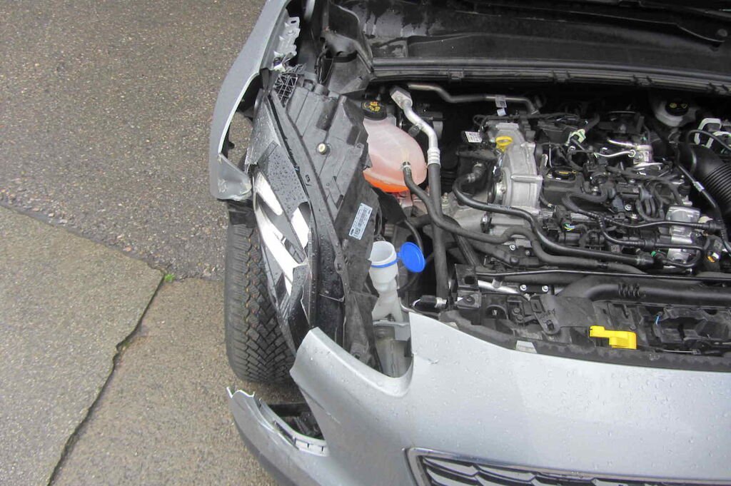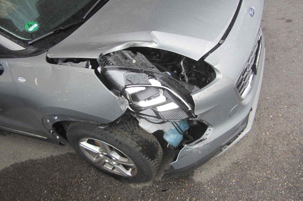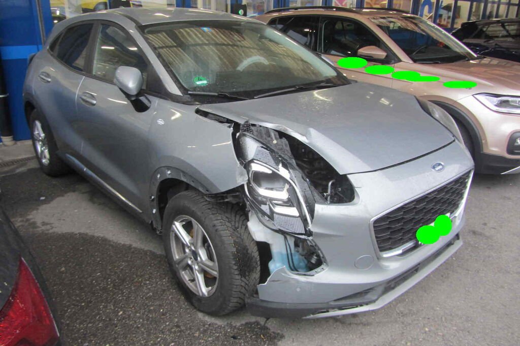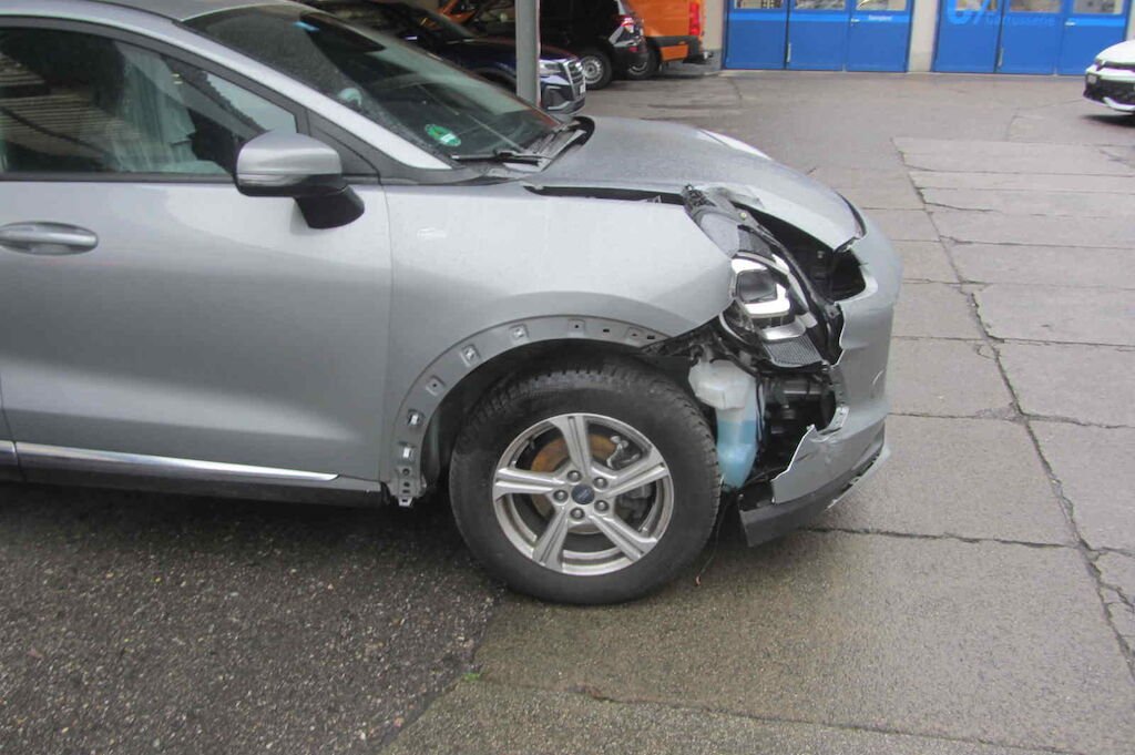Stossfänger vorne, Scheinwerfer u. Kotflügel vorne rechts, Motorhaube, Wischwasserbehälter, Nebelscheinwerfer VR, Felge VR, etc.