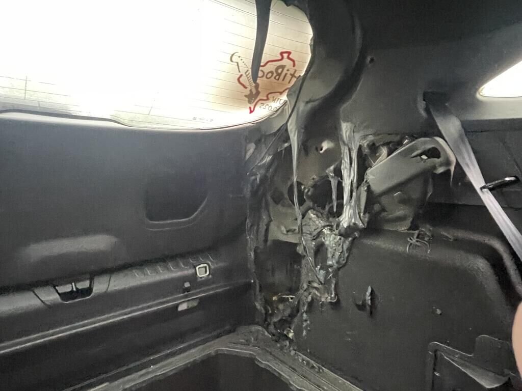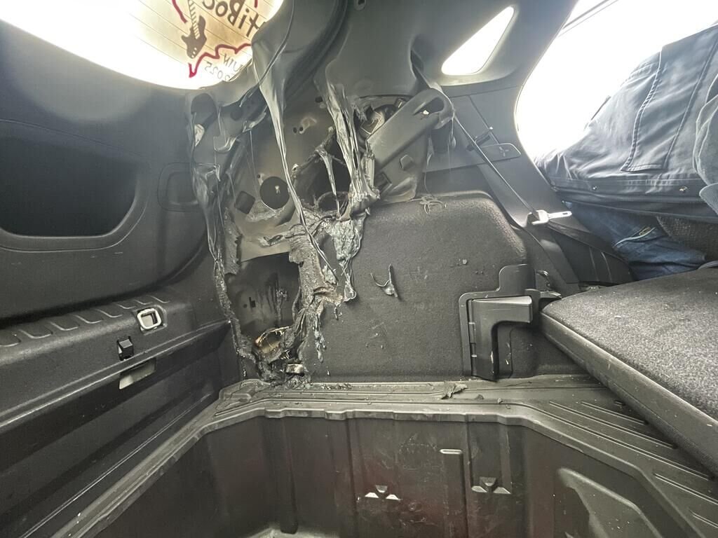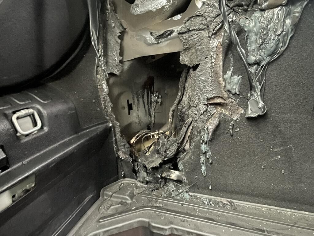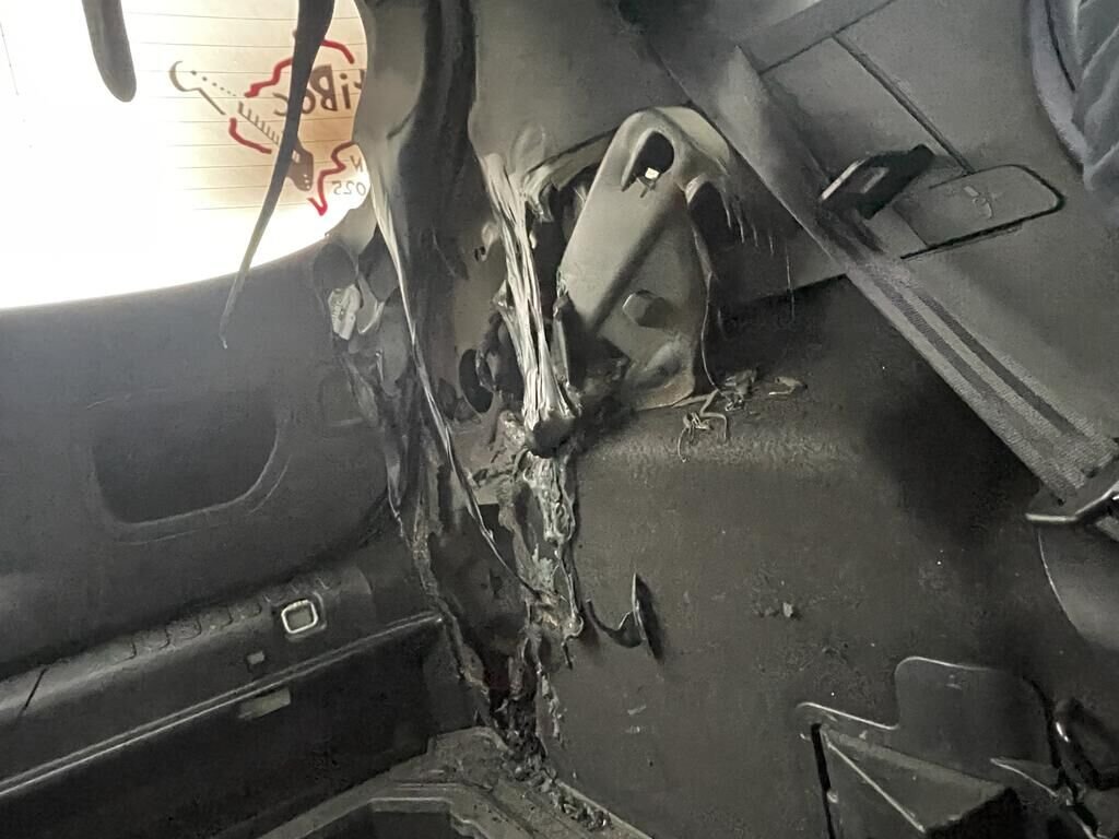 Garnitures intérieur, torche électrique hayon + pare-chocs et câble crochet d'attelage endommagés. Divers risques liés au court-circuit. Divers éléments de carrosserie sont légèrement endommagés.
