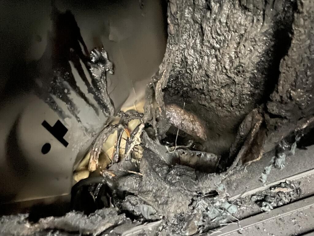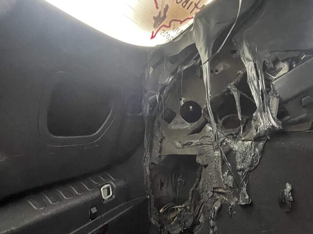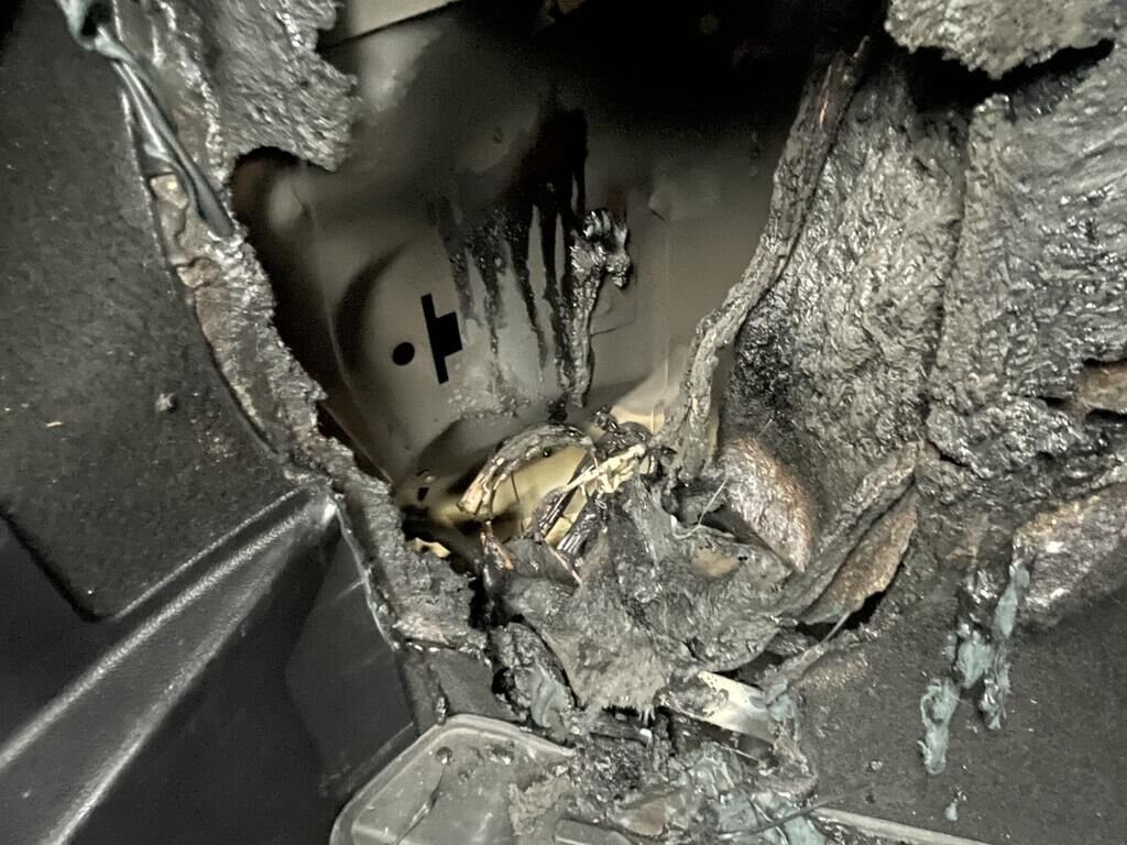 Incendie à l'intérieur du véhicule, suie et fumée dans le véhicule.